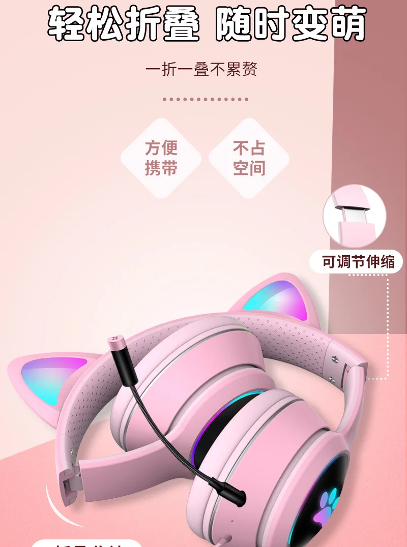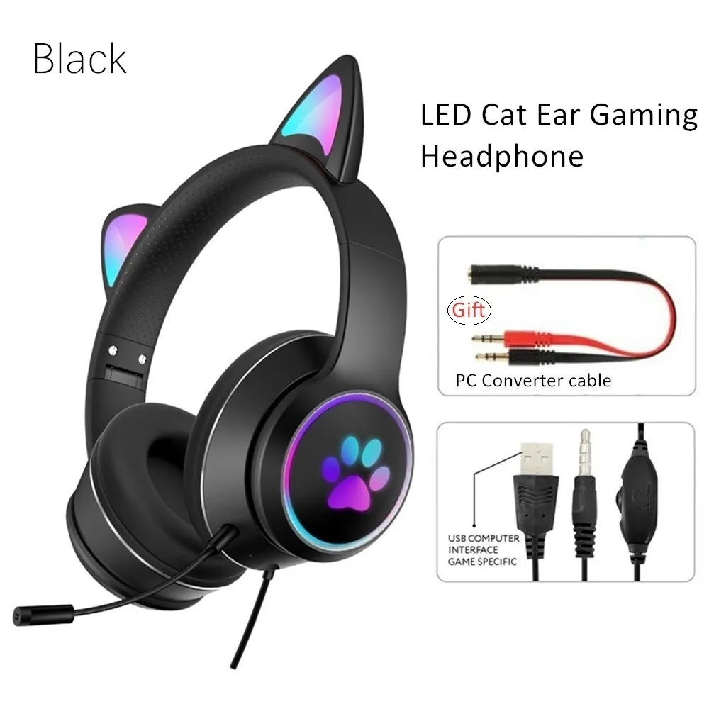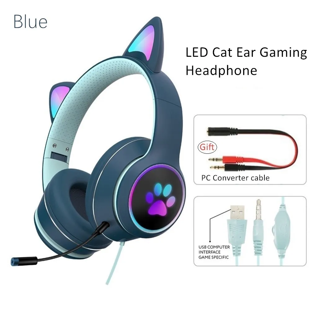 Cat Ear Gaming Headphone LED Light Girl Gamer Wired Headset Stereo Game Cat Earphone PC Earbud with Mic for Tablet PS4 PS5 Fifa