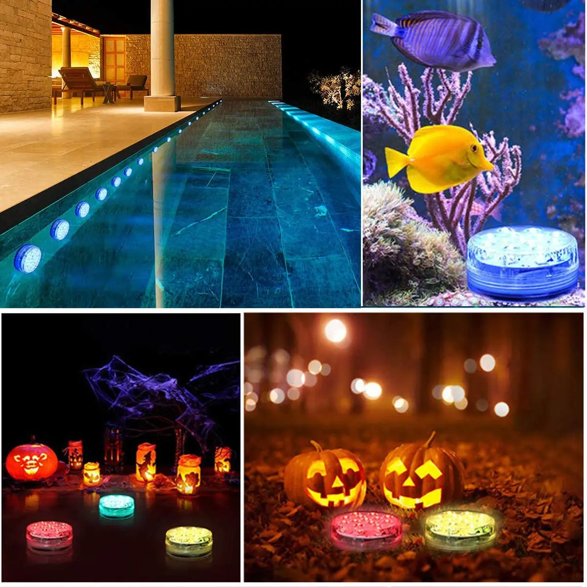 Широко используется-наши красочные светодиодсветильник для дайвинга широко используются в бассейнах, фонтанах, ваннах, аквариумах и т. Д. Также может использоваться как светильник для дней рождения, свадеб, Хэллоуина и Рождества.