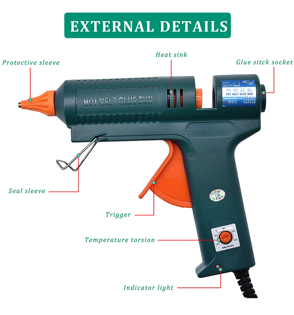 【Безопасно и EFFICIENT】-С высокотехнологичным нагревательным блоком PTC, он может нагреваться очень быстро, также с инженерным классом пластика корпуса клеевого пистолета, очень безопасно использовать этот продукт для всех.