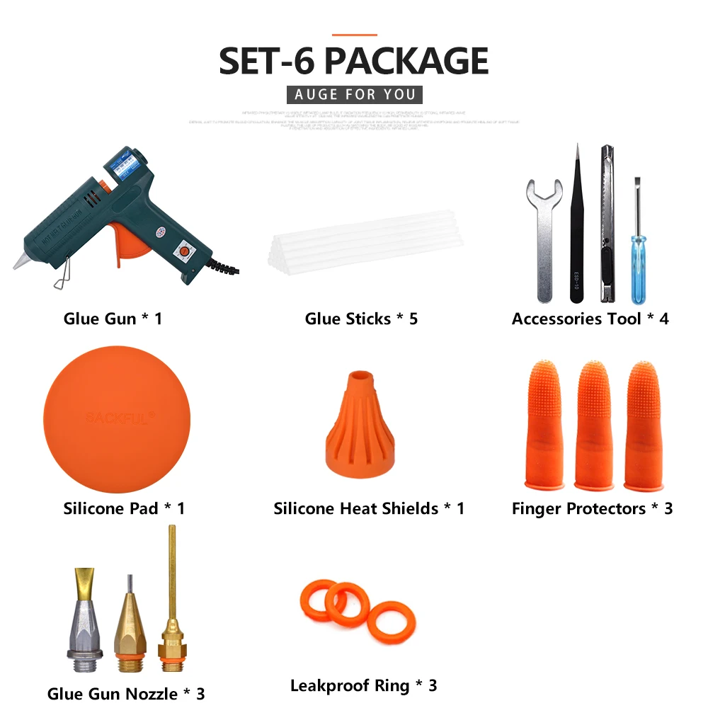【COPPER NOZZLES】-Отправка с 6 сменными насадками пистолета, которые изготовлены из чистой меди, они имеют действительно хорошую производительность утечки и клей используется плавность