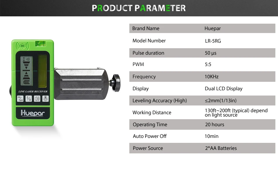 【Доступно для лазерного импульса красного и зеленого цвета: Включите импульсный режим лазерного уровня, затем лазерный приемник Huepar LR-5RG позволяет обнаруживать красные и зеленые импульсные лазерные лучи в сложных условиях, светильник расстояние до 200 футов.