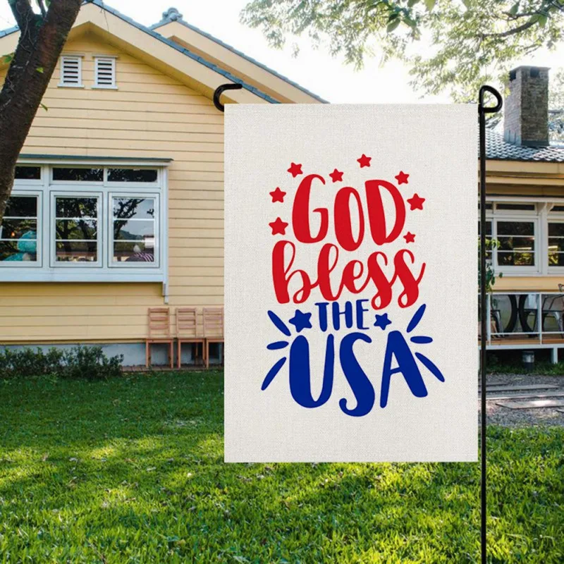 Прочный и высококачественный: Изготовлен из стирки и устойчив к выцветанию в воде. 4 июля баннер также нарисован вокруг, поэтому он будет продолжаться в сезон под солнцем.