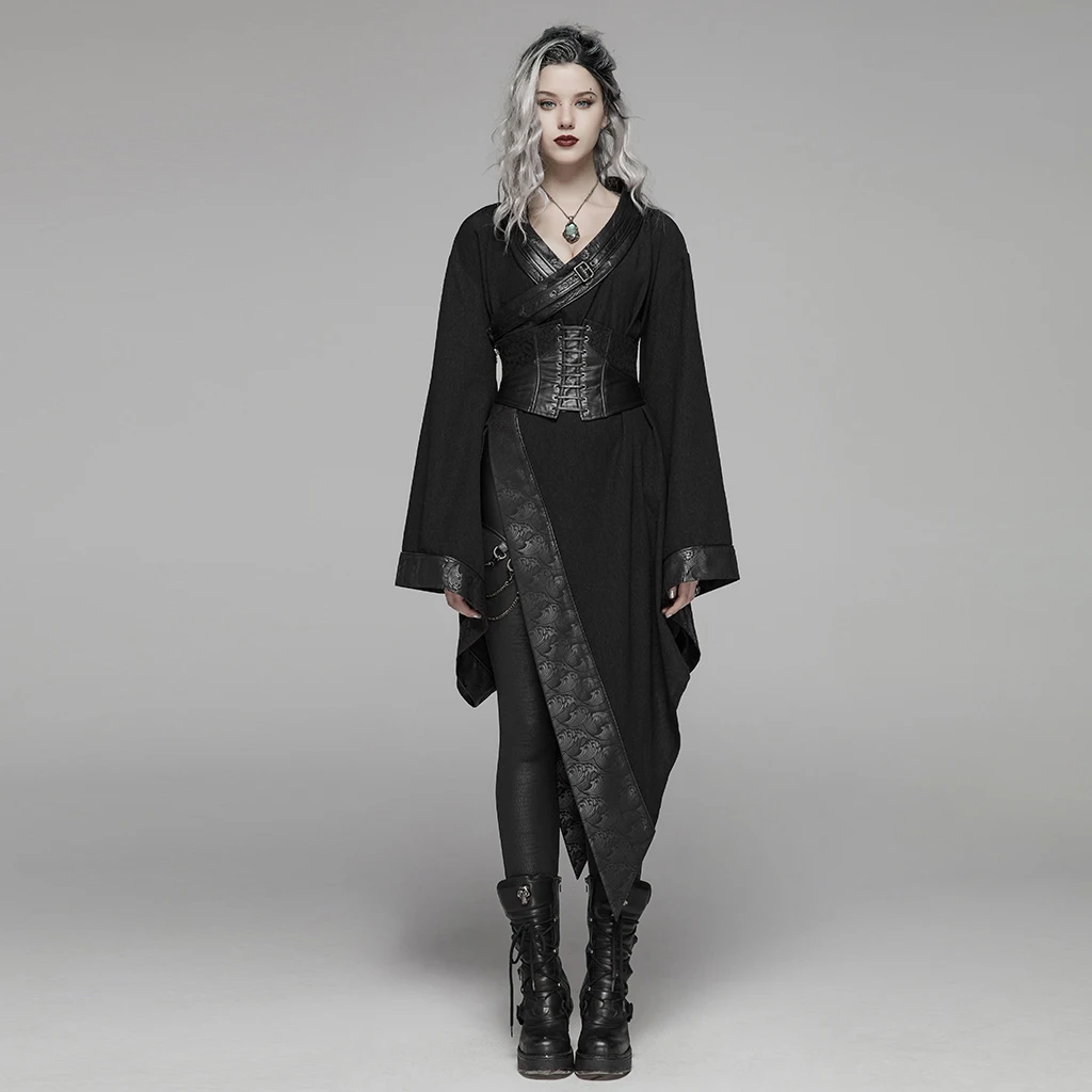 4. Асимметричный дизайн подола, рукав-небольшой фуризодный рукав.