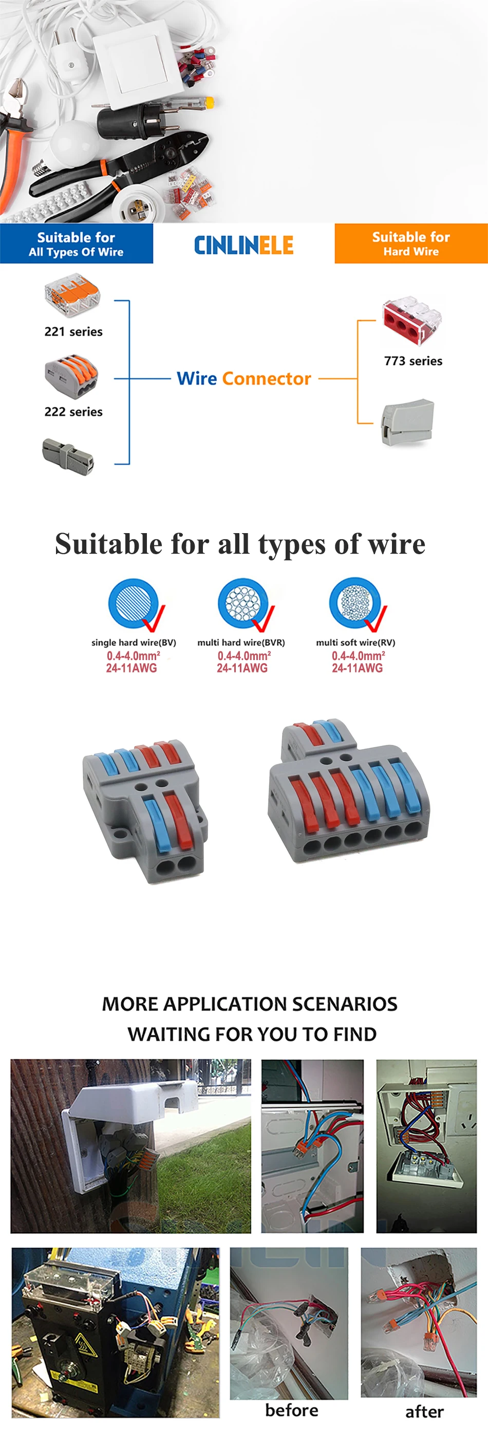 Размер твердых проводов (BV,BVR) 0,08-2,5 мм ^ 2 18-12AWG
