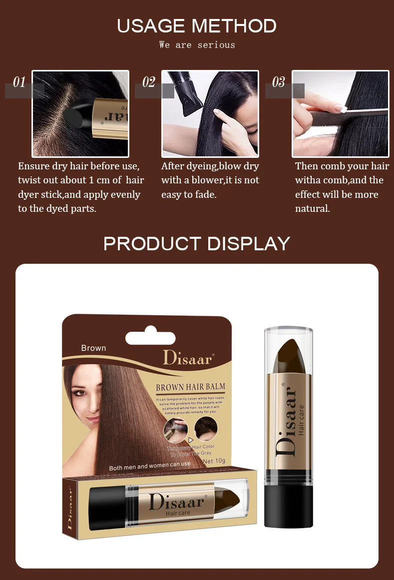Помада для волос, цветная ручка, покрытие, Стик для волос, стойкая, быстрая, временная краска для волос, крем, черно-коричневый Чехол, белая ручка для укладки волос
