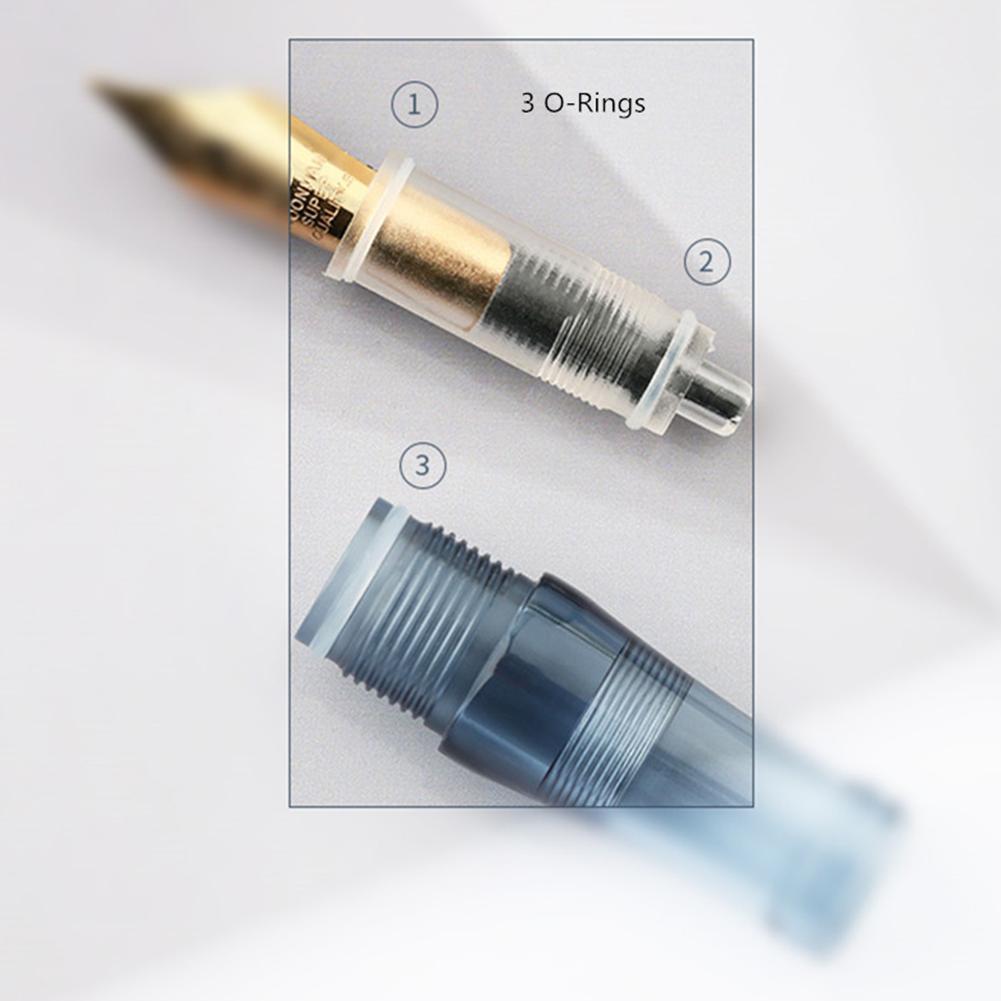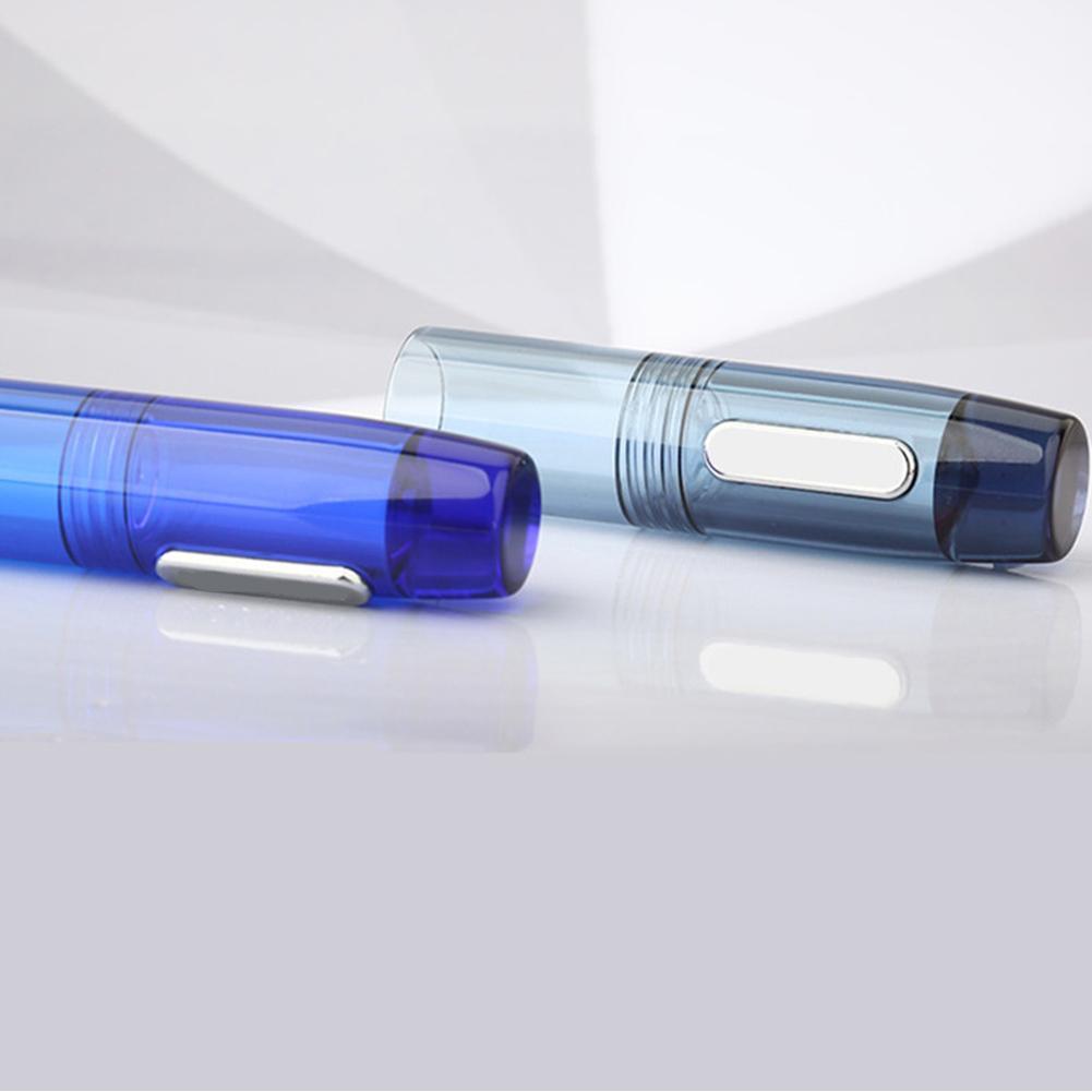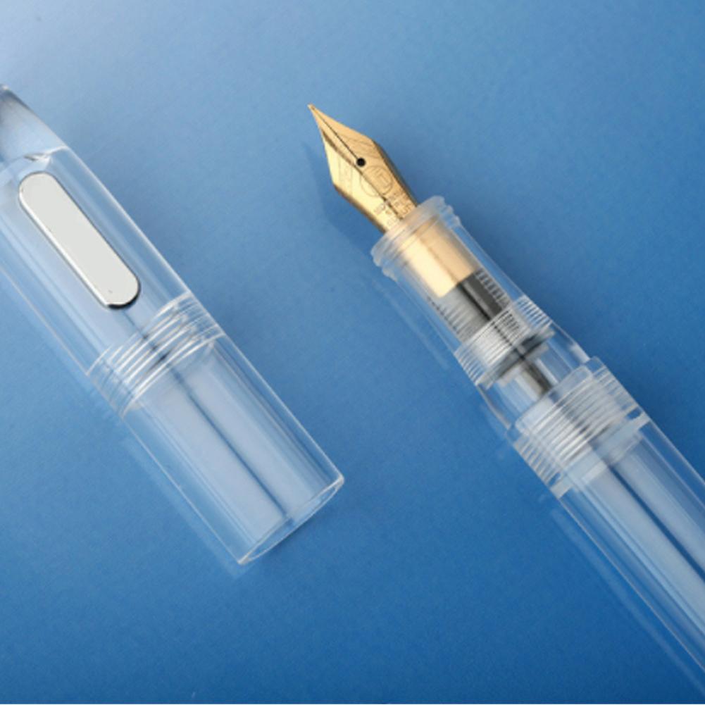 Полностью прозрачный корпус ручки изготовлен из высококачественного ПММА, металлический перьевой наконечник,