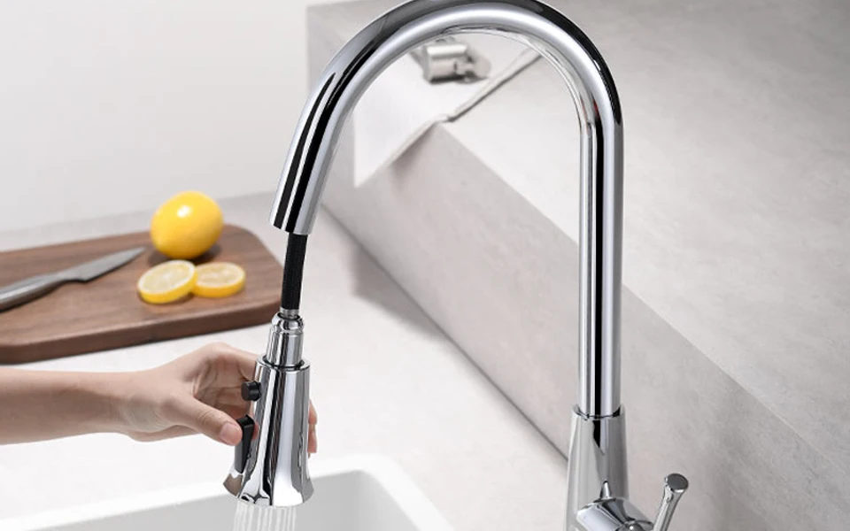 Вращение на 360 ° и выдвижной смеситель: вращение на 360 ° для одиночных и двойных раковин. Это с 1,2 м выдвижной шланг для душа, выдвижная более 40 см. Для гравитационных мячей выдвижной смеситель может сделать пульт дистанционного управления для очистки и удобнее.