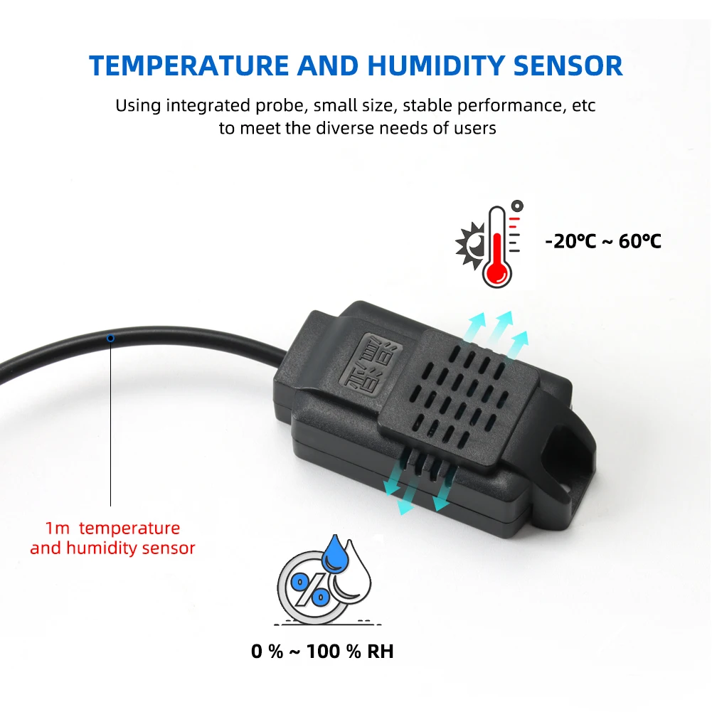 1. Размеры: 3,5 см * 8 см * 4,5 см 2. Диапазон температур: -20 °C ~ 60 °C 3. Диапазон влажности: 0% ~ 100% относительной влажности 4. Источник питания переменного тока 220 В или источник питания постоянного тока 0-30 в 5. Датчик температуры и влажности: с помощью интегрированного зонда, небольшого размера, стабильной производительности и т. Д., для удовлетворения различных потребностей пользователей 6,1 m датчик температуры и влажности, высокая точность, стелькой разработана для того, устойчивость к коррозии