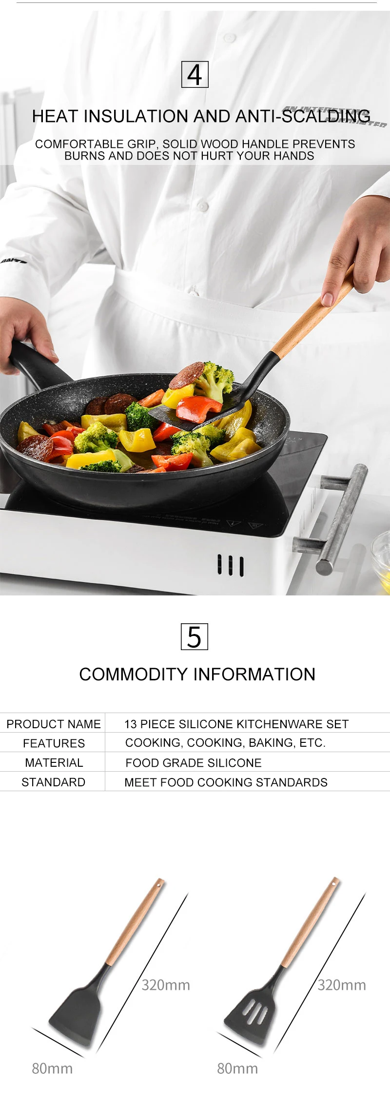 3. Силиконовая посуда с деревянными ручками не может использоваться в посудомоечных машинах. После волдырей, тепловое расширение и сжатие будут тяжелыми.