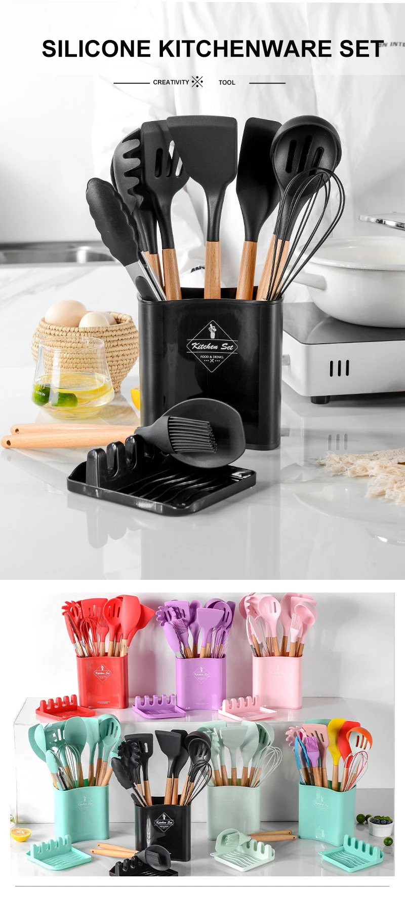 13 шт. силиконовая кухонная утварь набор баррель плоская посуда с деревянными ручками Набор инструментов для приготовления пищи с хранением аксессуары для кухонных инструментов