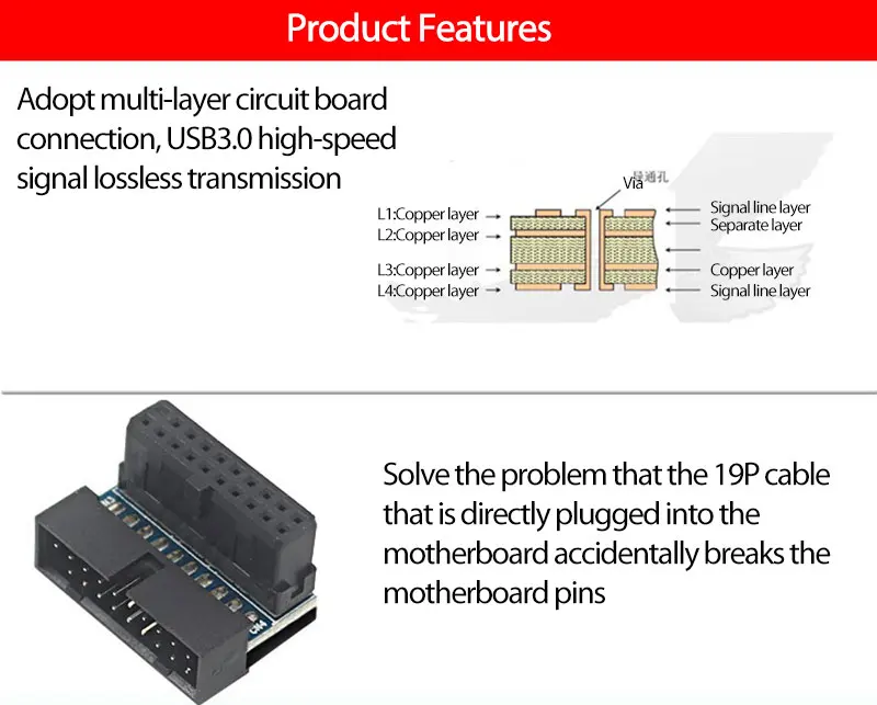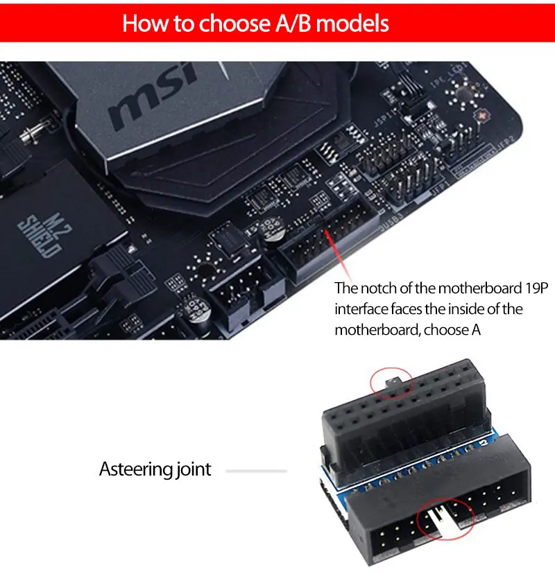 Решить проблему, что кабель 19p, непосредственно вставленный в материнскую плату, недостаточно мал, чтобы сломать pin материнской платы
