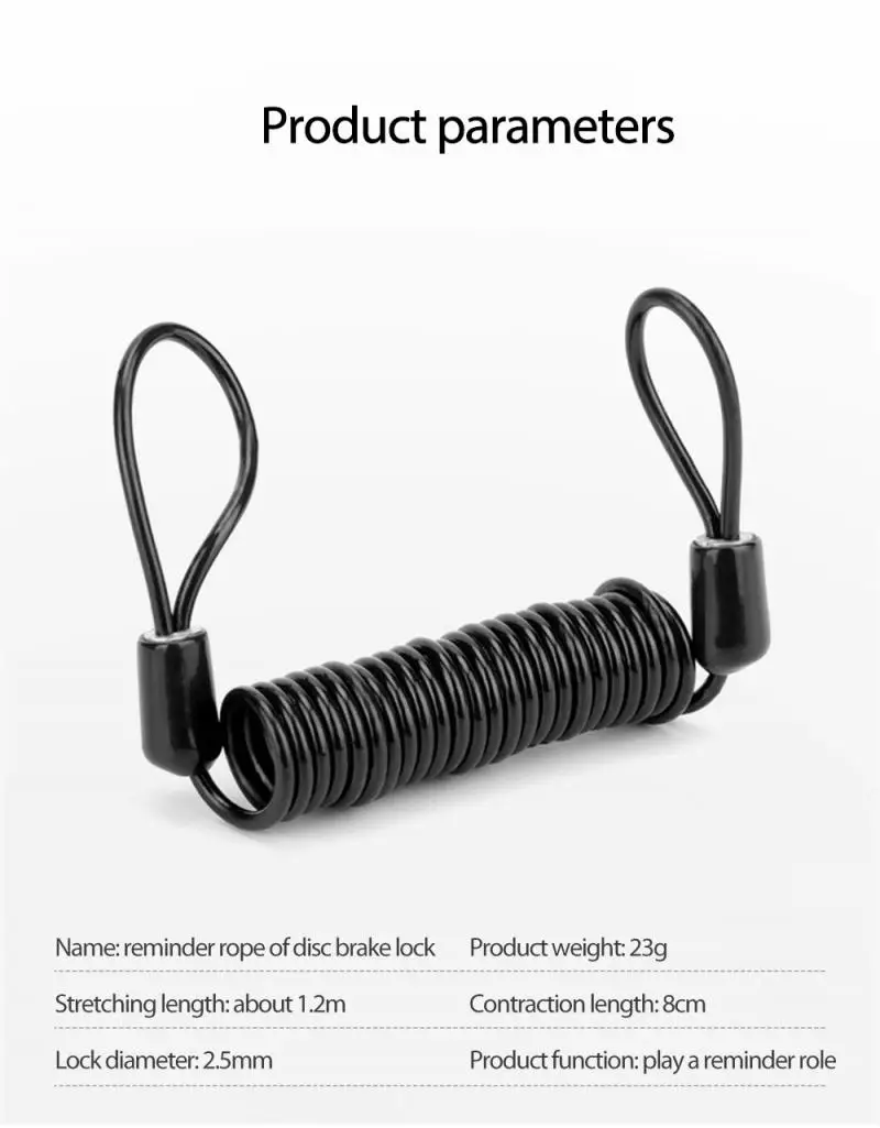 The choice of car lovers, multi-purpose disc brake lock reminder rope, thickened steel wire/small and portable/widely used Built-in steel wire is strong and resistant to tension The contracted state is less than 8mm, which is convenient to carry around. Good elasticity Sealed structure waterproof design Adopt a fully enclosed structure design to protect against short-term soaking Small size, big effect