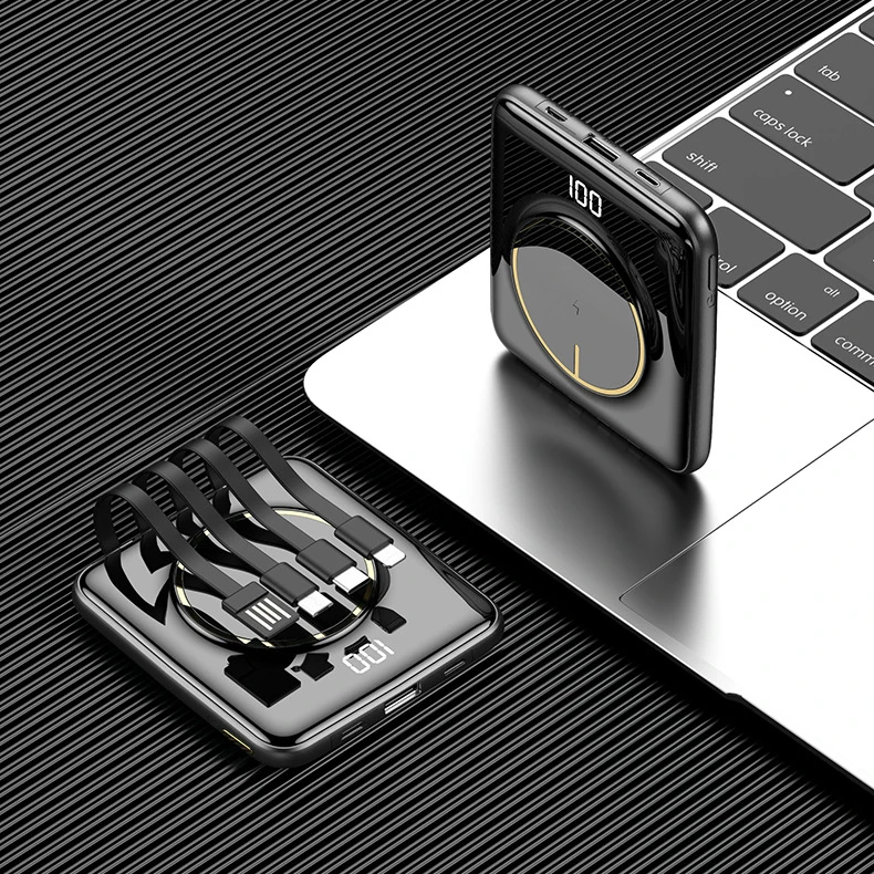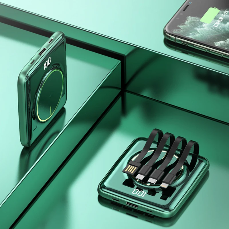 10000 мАч Ци беспроводной блок питания с четырьмя кабелями USB TYPE C внешний аккумулятор светодиодный цифровой блок питания для iPhone Xiaomi Huawei Samsung