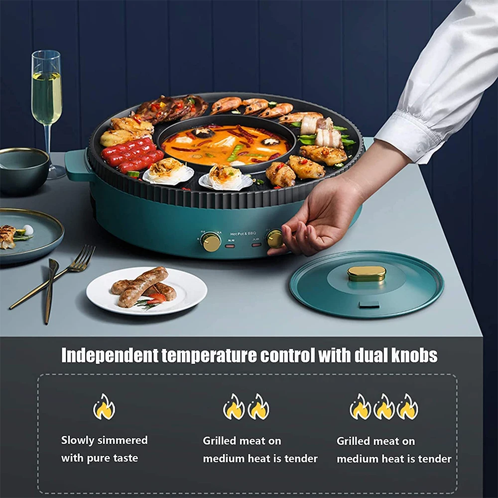 ❤Интегрированный дизайн горячего горшка и барбекю: лоток для барбекю и горячий горшок оснащены независимым источником питания и устройствами контроля температуры. Многофункциональный горячий горшок и барбекю двойного назначения горячий горшок, лоток для выпечки подходит для всех видов мяса, овощей, моллюсков и т. Д. Горячий горшок с перегородкой может сделать два вида горячего горшка, так что вам не придется беспокоиться о горячем горшке или барбекю, Интегрируйте электрическую духовку и Наслаждайтесь вкусом, вызванным горячим горшком и барбекю.
