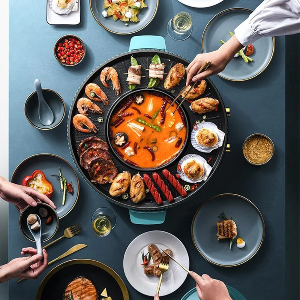 Многофункциональный бездымный Электрический гриль для барбекю, жаровня, духовка, антипригарная сковорода для барбекю, Корейская сковорода Shabu, Кухонная техника для приготовления пищи