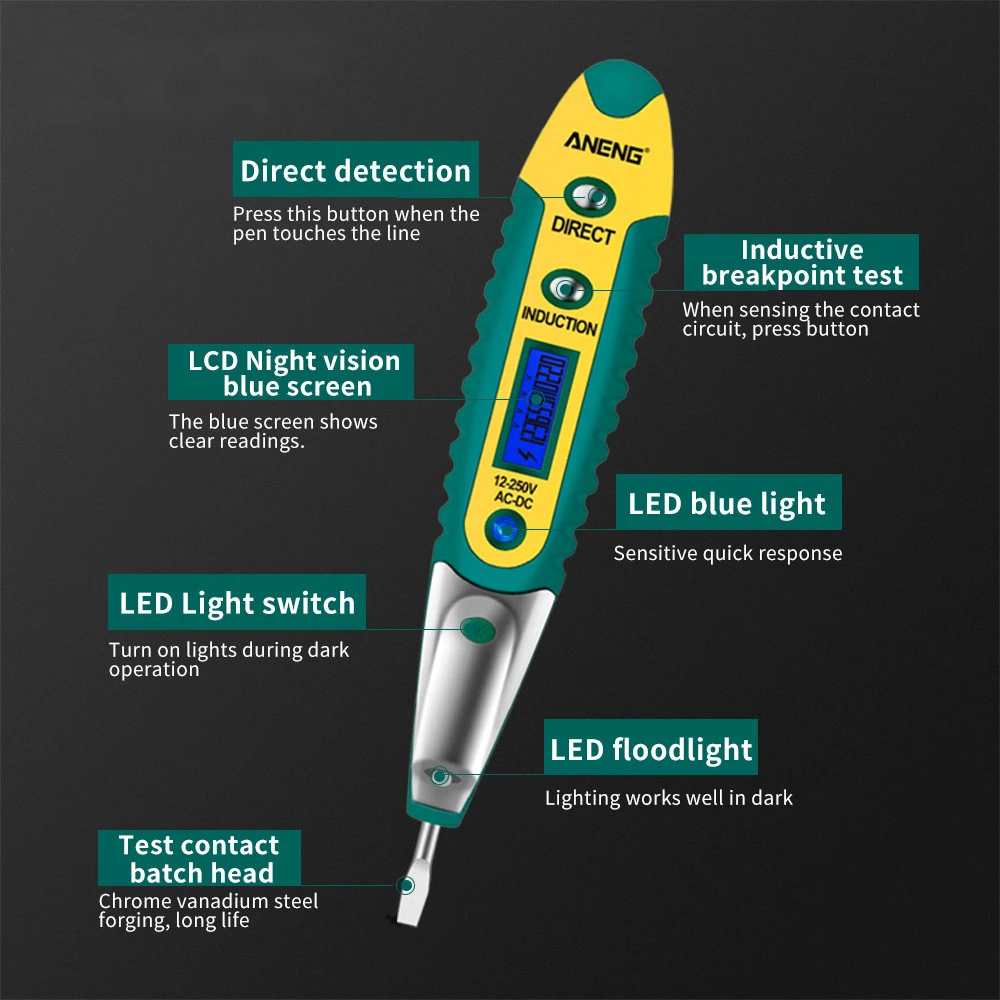 Мультицифровой тестовый карандаш AC DC 12-250 В тестовый er электрическая отвертка ЖК-дисплей детектор напряжения тестовая ручка электрик инструменты