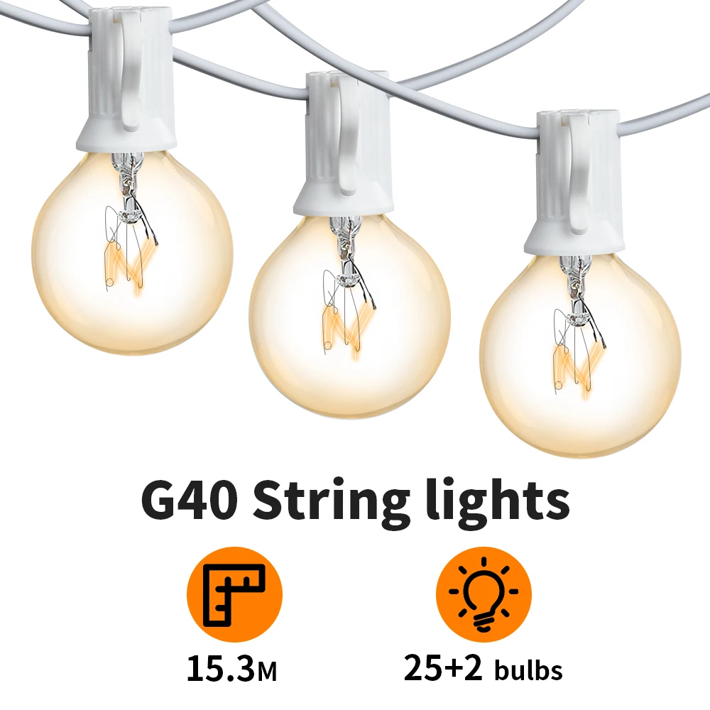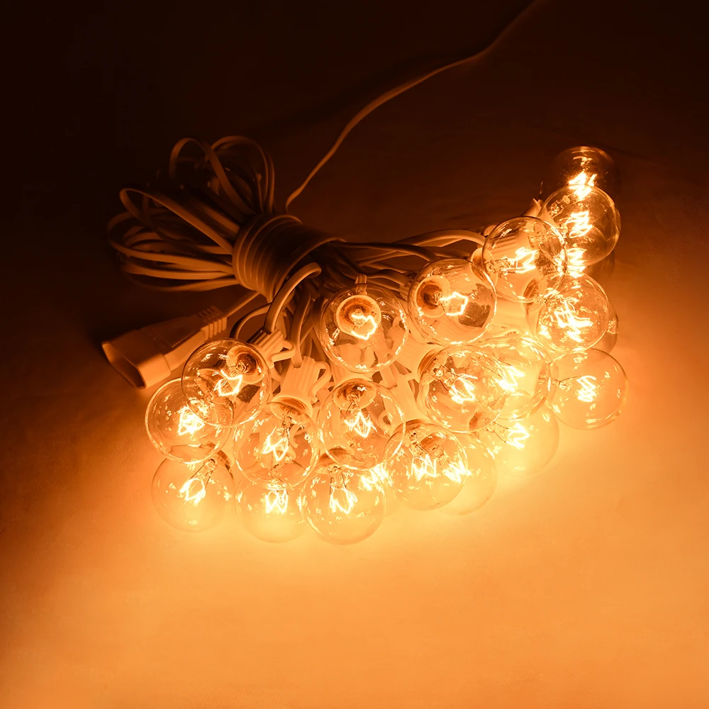 50 футов белый кабель G40 Глобус струнный светильник s 25 прозрачные лампы Сказочный светильник подвесной открытый IP44 Водонепроницаемый Свадебный гирлянда струнный светильник