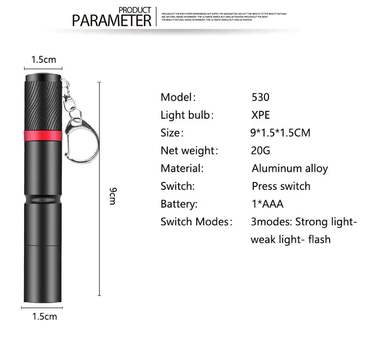 Размер кармана: Этот светильник маленький и достаточно светильник, чтобы проскользнуть в карман, рюкзак или кошелек. Супер Мини размер легкий и достаточно маленький для EDC и помещается в ладони. Вес всего около 30 г.
