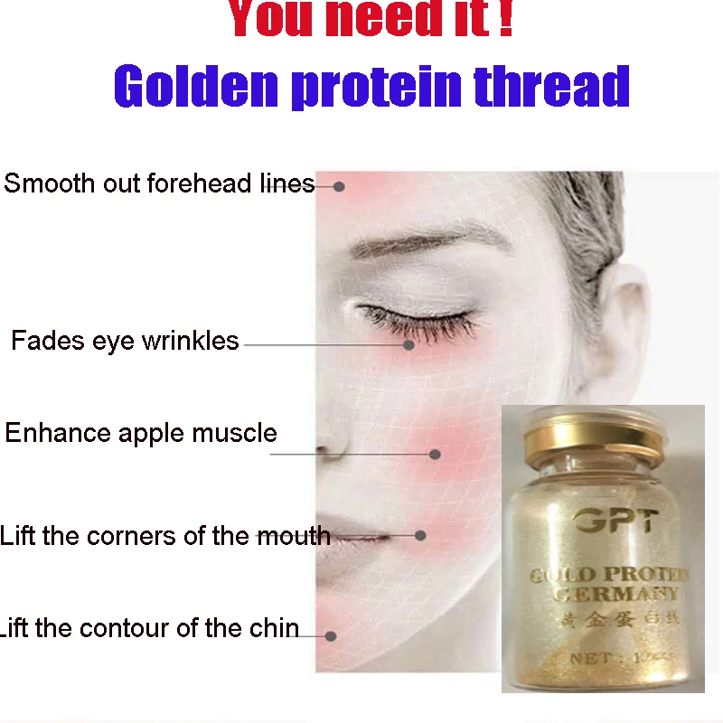 Нет Neddle против старения Золотой белок нить подъема лица линии резной
