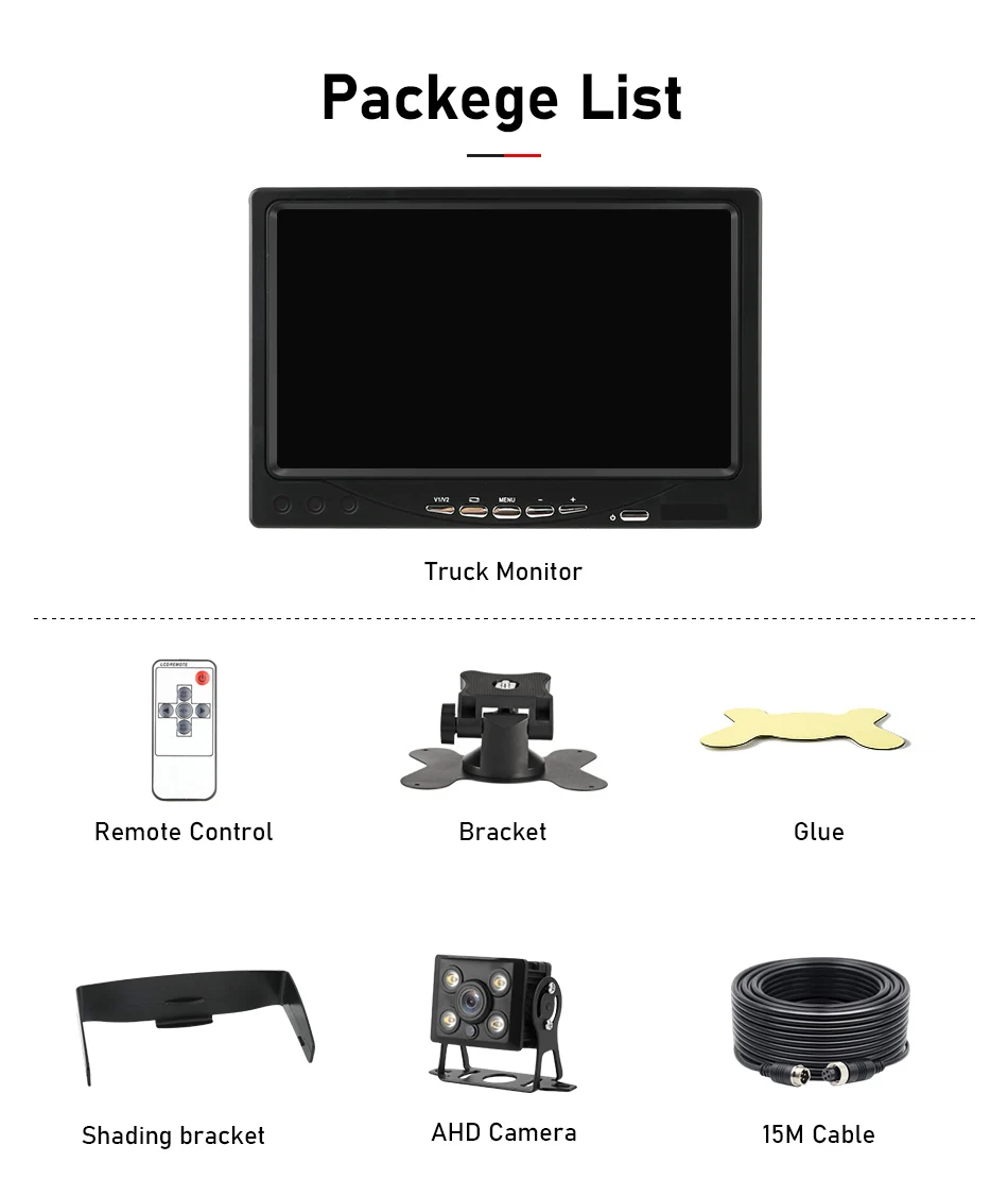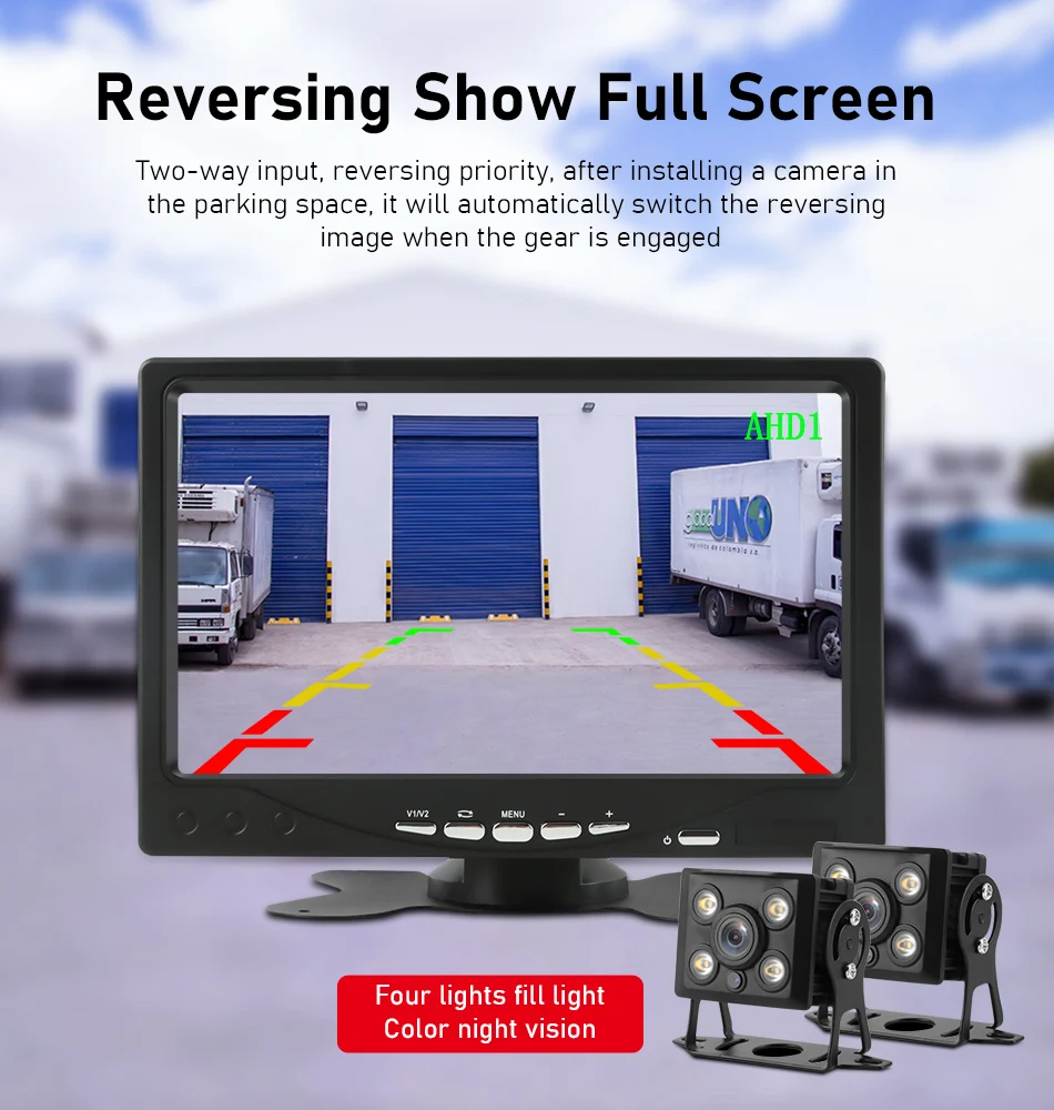 Особенности-помогает вам видеть скрытые места за автомобилем при парковке или заднем движении-с держателем подставки, который имеет клейкую наклейку в нижней части для прочно и стабильно приклеивания к вашему автомобилю-7 дюймов AHD двухканальный вход для заднего хода. Он может идеально работать с камерой заднего вида автомобиля. -Большой угол обзора 170 °-экран может свободно вращаться вверх и вниз, влево и вправо, в соответствии с вашими потребностями, легко смотреть-функция супер ночного видения