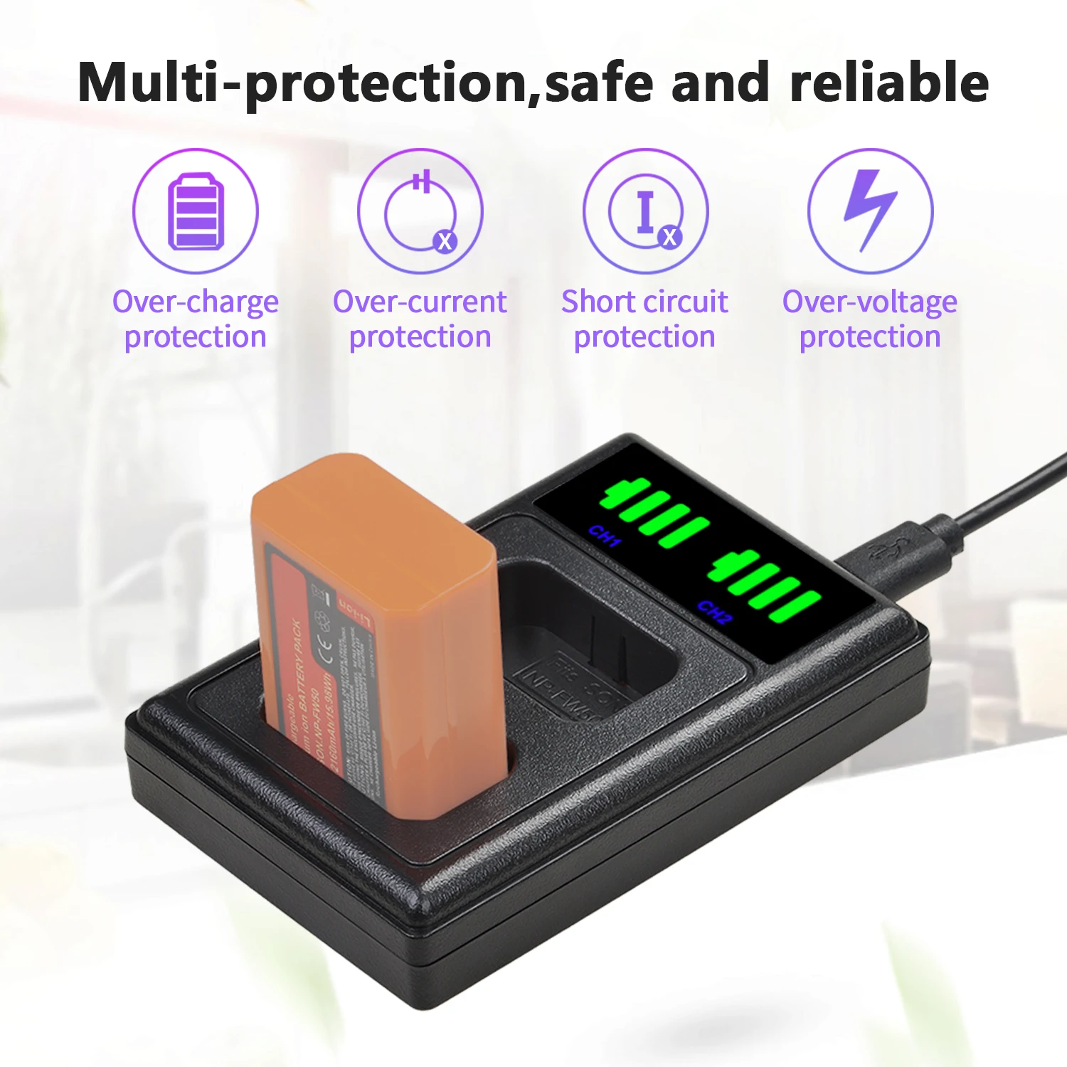 Встроенная защита от нескольких замыканий (перезарядка, короткое замыкание, высокая температура и защита от перенапряжения) и высококачественная огнестойкая конструкция.