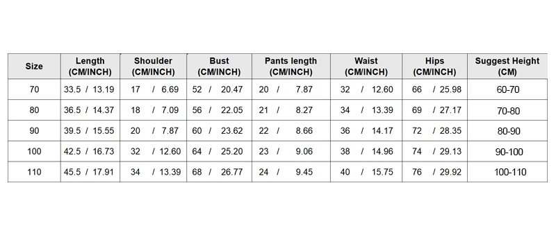 Таблица размеров