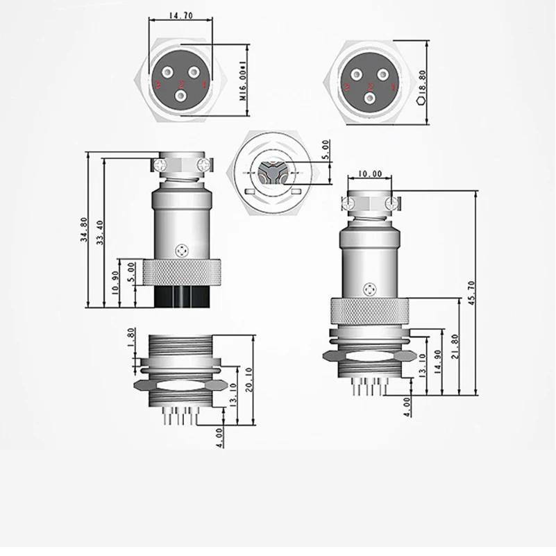 1 шт. GX16, 2-контактный, 3-контактный, 4-контактный, 5-контактный, 6-контактный, 7-контактный, 8-контактный разъем, авиационный разъем, штекер, круглая Проводная панель, разъемы