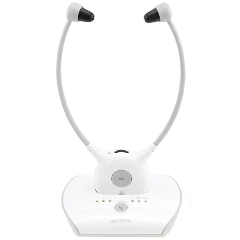 Это 2,4 GHz цифров Беспроводной подбородка гарнитура использует новейшие цифровые Беспроводной технологии, И позволяет улучшить возможности слухового аппарата, которые могут потребоваться пожилым людям, чтобы наслаждаться кристальной стереозвуком и ТВ-звуком в любом месте внутри вашего дома. Просто подключите передатчик к желаемому источнику аудио: dvd-плееру, cd-плееру, телевизору, Hi-Fi системе или iPod. Без сложного подключения и установки система позволяет наслаждаться захватывающим, реалистичным звуком в течение нескольких минут.