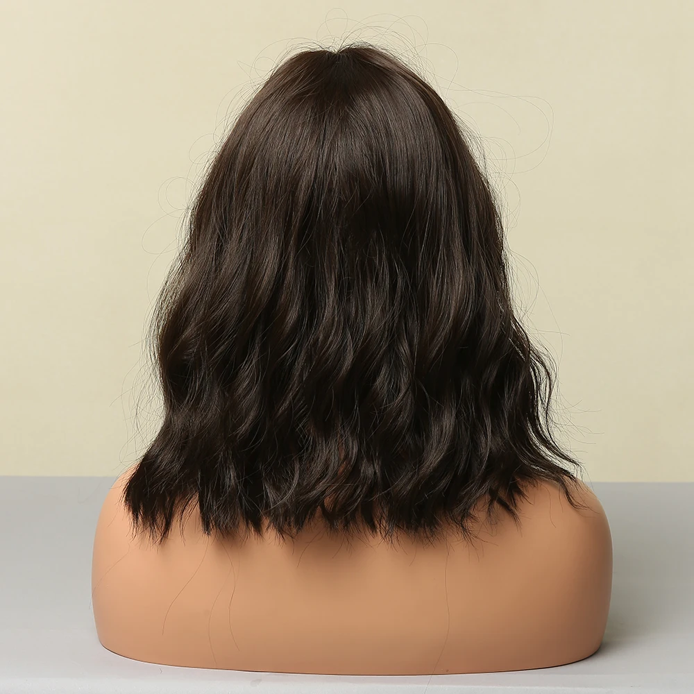 GEMMA средние Волнистые Темно-коричневые синтетические парики с челкой натуральные Косплей Жаростойкие волосы для черных женщин афро-американские