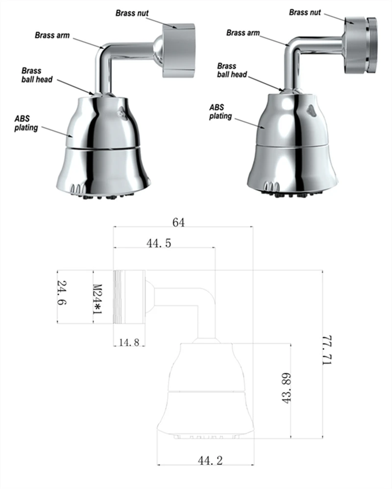 2. Простота установки: без каких-либо инструментов, просто убедитесь, что ваш смеситель подходит по размеру и может использоваться, затем поместите насадку для душа в смеситель и затяните кронштейн по часовой стрелке, чтобы завершить установку