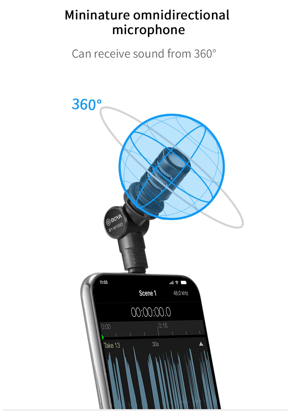 BY-M100UC-это миниатюрный размер, всенаправленный микрофон для большинства устройств Type-c.