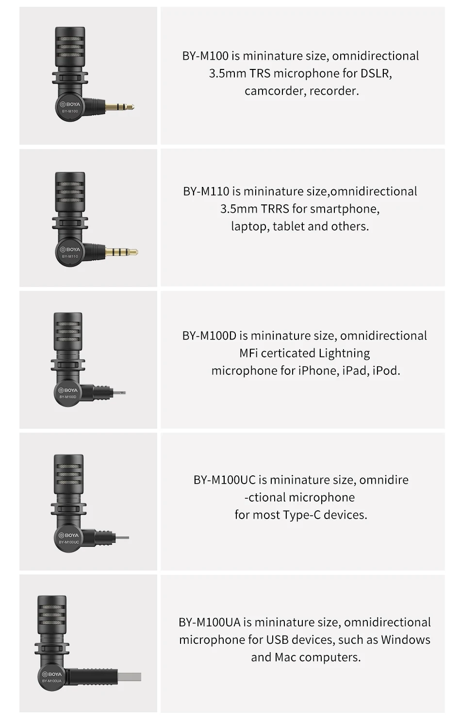 BY-M110-это миниатюрный размер, всенаправленный 3,5 мм TRRS для смартфонов, ноутбуков, планшетов и других.
