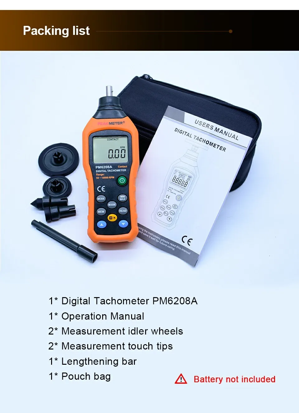 Описание:MS6208A-цифровой тахометр контактного типа со стабильной производительностью, высокой надежностью и высокой производительностью.Основной компонент счетчика-компактный высокоскоростной интегрированный чип.Счетчик будет отображать скорость вращения от 50 rpm---19999rpm.ЖК-дисплей с подсветкой позволяет делать и считывать измерения в условиях низкого уровня светильник.Спецификация:Измерение контакта: 50 ~ 19999 ОБ/мин ±(0.03% + 2)Расстояние измерения: N/AАвтоматическое выключение: 30SМакс/мин/AVG функции: √M/min m/sec ft/min ft/Sec in/min Выбор единицы измерения: √Регистрация данных: 100 группХранение данных: √Светодиодный задний светильник: √Индикация низкого заряда батареи: √Источник питания: аккумулятор 4x1.5AAAПродукт Размеры: 193 мм x 60 мм x 29 мм (7,5 "x 2,4" x Л. ")Вес изделия: 120 г (0.31b)Категория: CEВес упаковки: 300 гРазмер упаковки: 189*111*62 ммПосылка включает:1 * MS6208A цифровой анемометр1 * Руководство пользователя1 * метр мешок1 * USB кабель