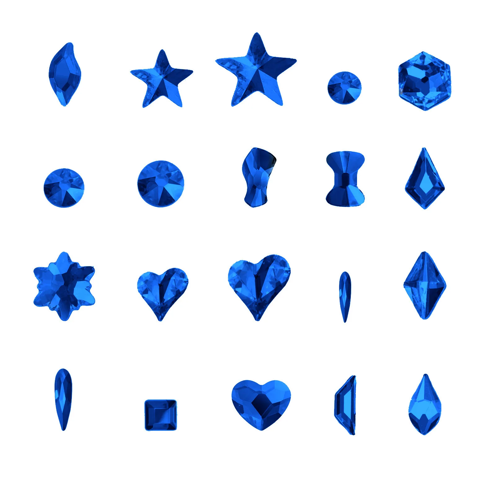 Материал: кристалл Цвета; Синий Размер: смешанный размер Форма: формы смешивания s Использование: необходимо использовать клей для сумок, одежды, дизайна ногтей, обуви, сотового телефона, коробки, ручки, мебели, поздравительных открыток, etcPacking Деталь: 20 шт