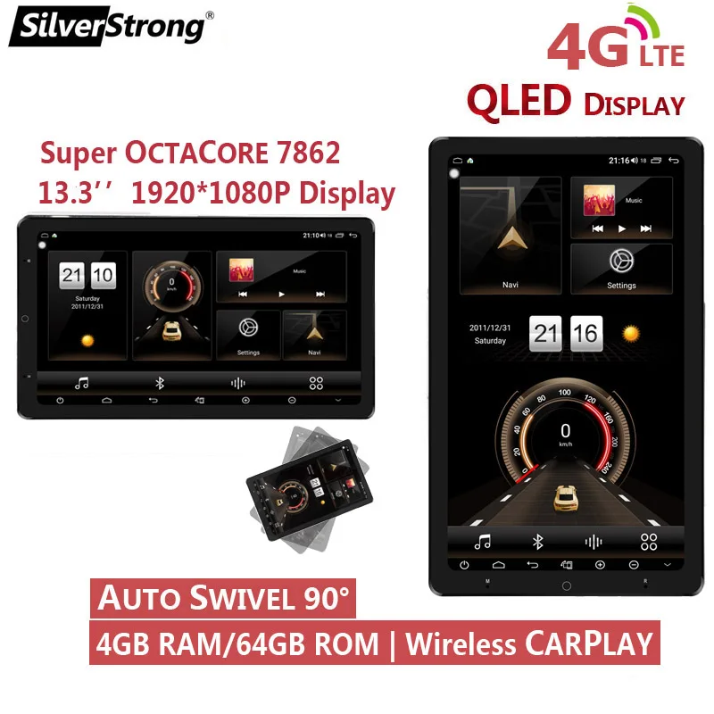 Автоматически переключаемый вертикальный или горизонтальный дисплей с автомоторизованным экраном! FHD1920 * 1080P QLED Android10.0 Универсальный 13,3 дюймов 2Din CarPlay радио GPS Tesla экран вращающаяся панель 4G SIM модем