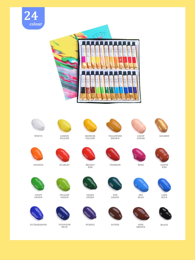 Высококачественные толстые пигменты: когда акриловые пигменты тонкие, они будут выглядеть водянистыми и трудно достичь вибрации. Мы разработали толстый и богатый пигмент, который обеспечивает превосходное покрытие и сохраняет гладкость во время окраски.