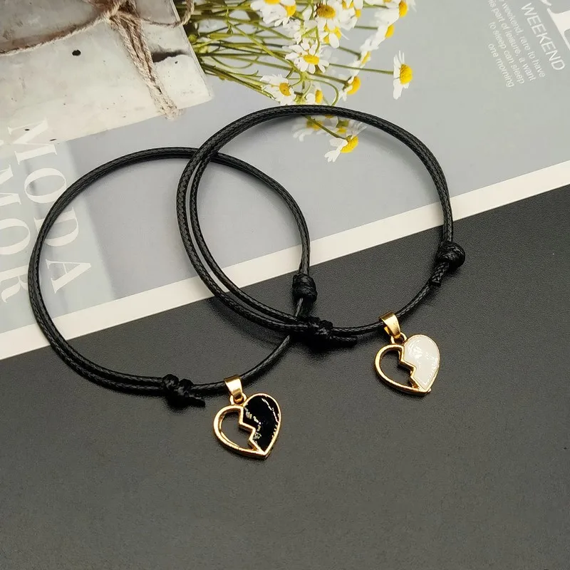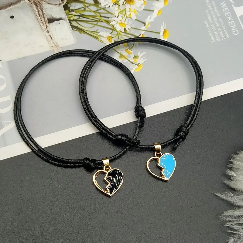 2 шт./лот парный браслет полое Любовь Сердце лучший друг веревочный браслет регулируемые Модные мужские женские украшения на руку оптовая продажа