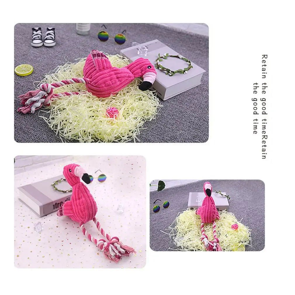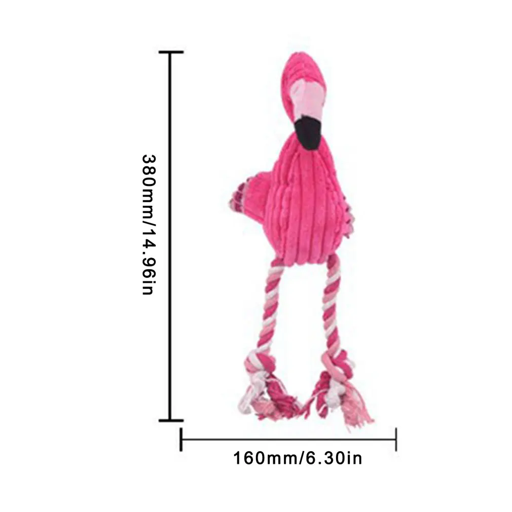 Этот продукт представляет собой звуковую игрушку с изображением фламинго, и дизайн с узлом ноги может удовлетворить желание питомца измельчать зубы и кусать.
