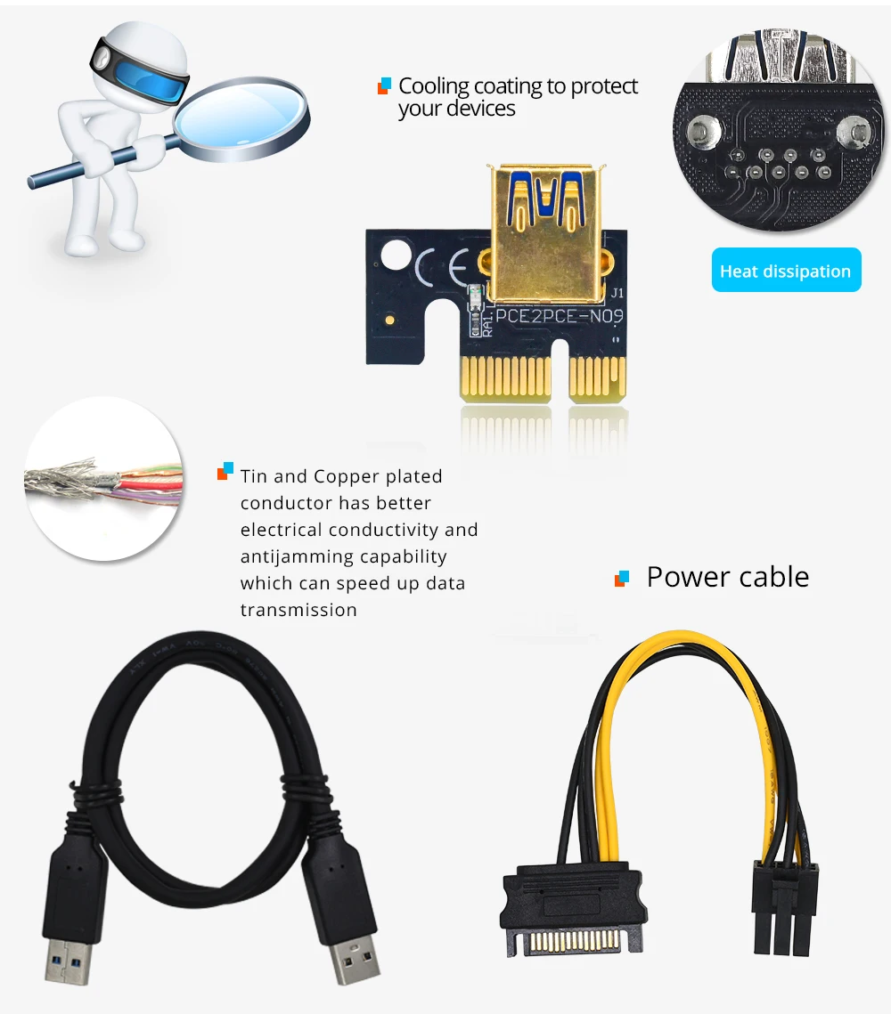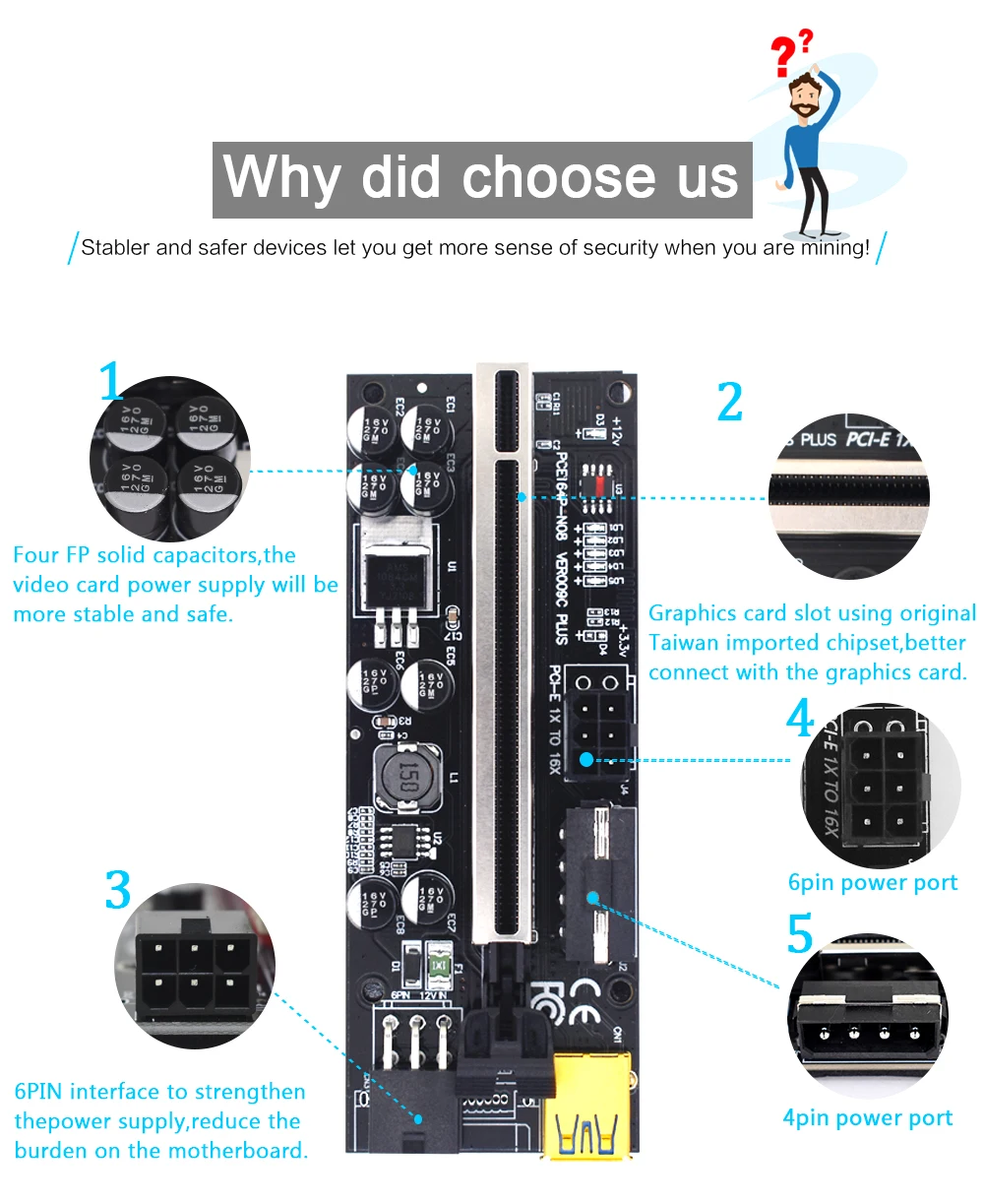 TISHRIC PCI PCIE Riser 009S Plus PCI E Express Riser Card VER009C адаптер для расширения видеокарты PCIE X16 для майнинга