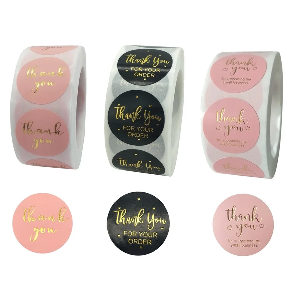 Благодарим Вас, наклейки для поддержки моего малого бизнеса, клейкие рулоны для выпечки, круглые этикетки, крафт-розовый, черный для магазина, подарочная упаковка