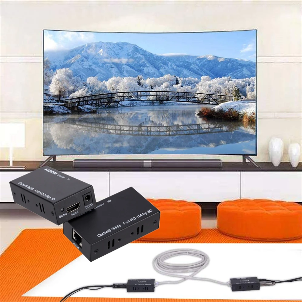 60 м HDMI удлинитель продлевает HDMI сигнал до 60 метров через один cat-5e или cat-6 (рекомендуется) ethernet кабель, нарушает ограничение длины передачи HDMI, И экономия затрат на передачу HDMI на большие расстояния, так что другие проекты и домашняя проводка более стабильны и эффективны, значительно экономя затраты клиента.