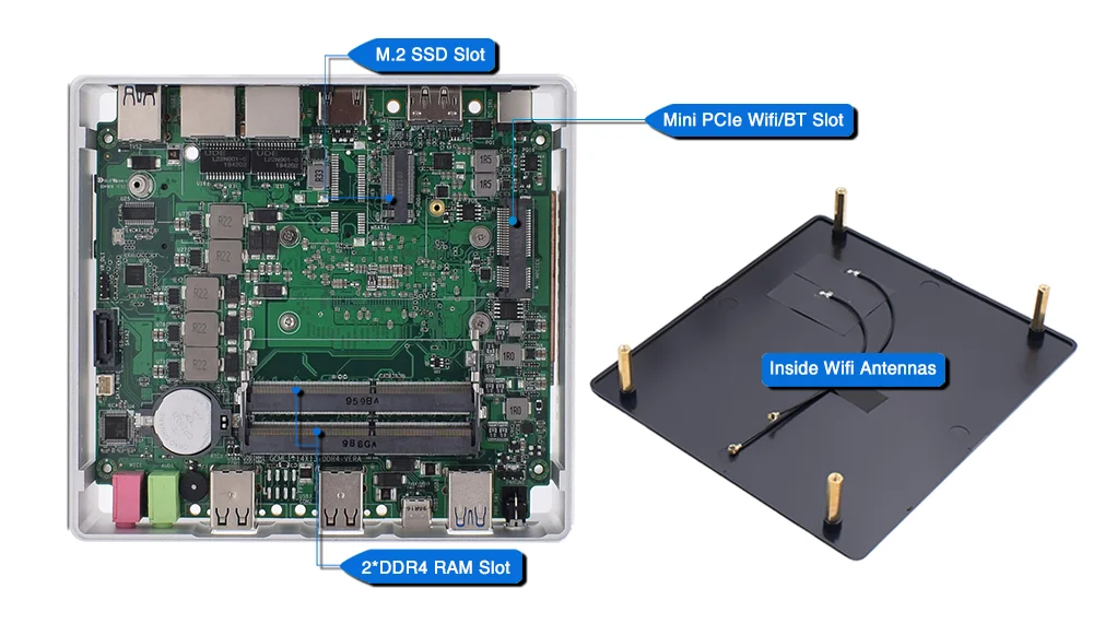 3. Поддержка двух жестких дисков, один M.2 SSD и один 2,5 дюймовый HDD/SSD (без места для установки);