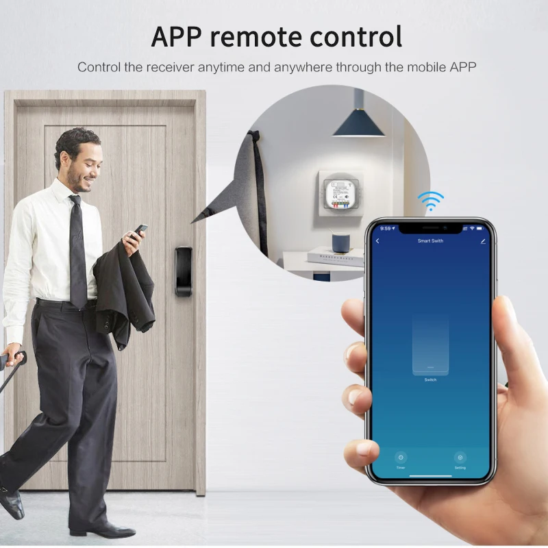 Дистанционное управление мобильным приложением, голосовое управление Google Home Alexa. С помощью смартфона или планшета удаленно управляет умным выключателем питания Wi-Fi с помощью бесплатного приложения smart Life или Tuya Smart из любого места в любое время. Легко управлять своей бытовой техникой.