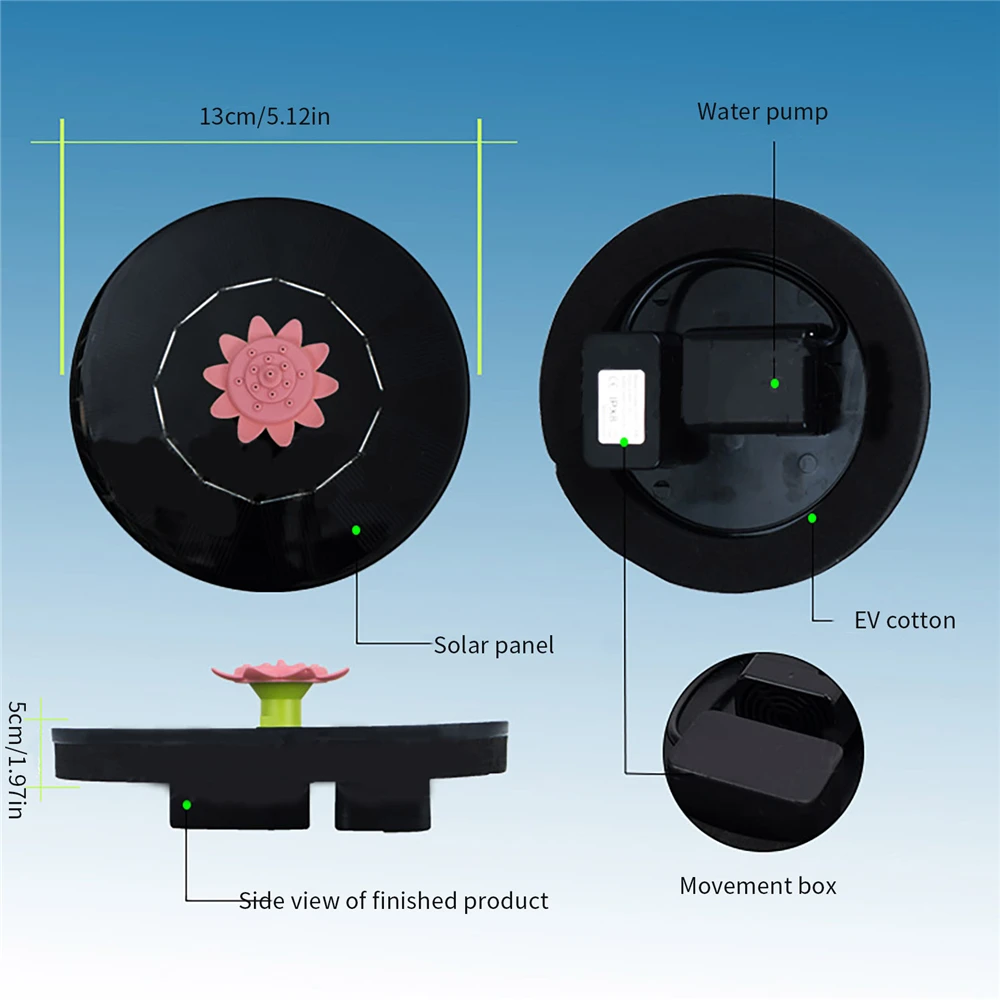 Описание: Модернизированный листовой Солнечный фонтанный насос: наш Модернизированный листовой Солнечный фонтанный насос прикрепляет 5 различных стилей головок сопла. Идеально подходит для наружной ванны для птиц, аквариума, маленького пруда, ванны для птиц для сада, бассейна. Солнечный фонтан для ванны птицы полностью контролируется солнечной энергией. Работает автоматически и на солнечной батарее. Дизайн в форме листьев и множество аксессуаров для сопла, безусловно, приносят больше энергии вашему пруду или бассейну. Солнечные фонтаны работают легко, просто сделайте Солнечный водяной насос плавающим на воде, он будет работать автоматически после того, как солнечная панель наполнит солнечный свет. Предложение: пожалуйста, подтвердите, что в вашем фонтане достаточно воды, чтобы этот Солнечный водяной насос мог оставаться полностью под водой. Пожалуйста, Регулярно очищайте насос, чтобы избежать блокировки насоса от грязи. Размер: 130 мм Материал фонтана: ABS + PC Параметры продукта: 6 В/1 Вт Материал Солнечной Батареи: монокристаллический кремний Посылка включает в себя: 1 × модернизированные солнечные фонтаны с 5 насадками
