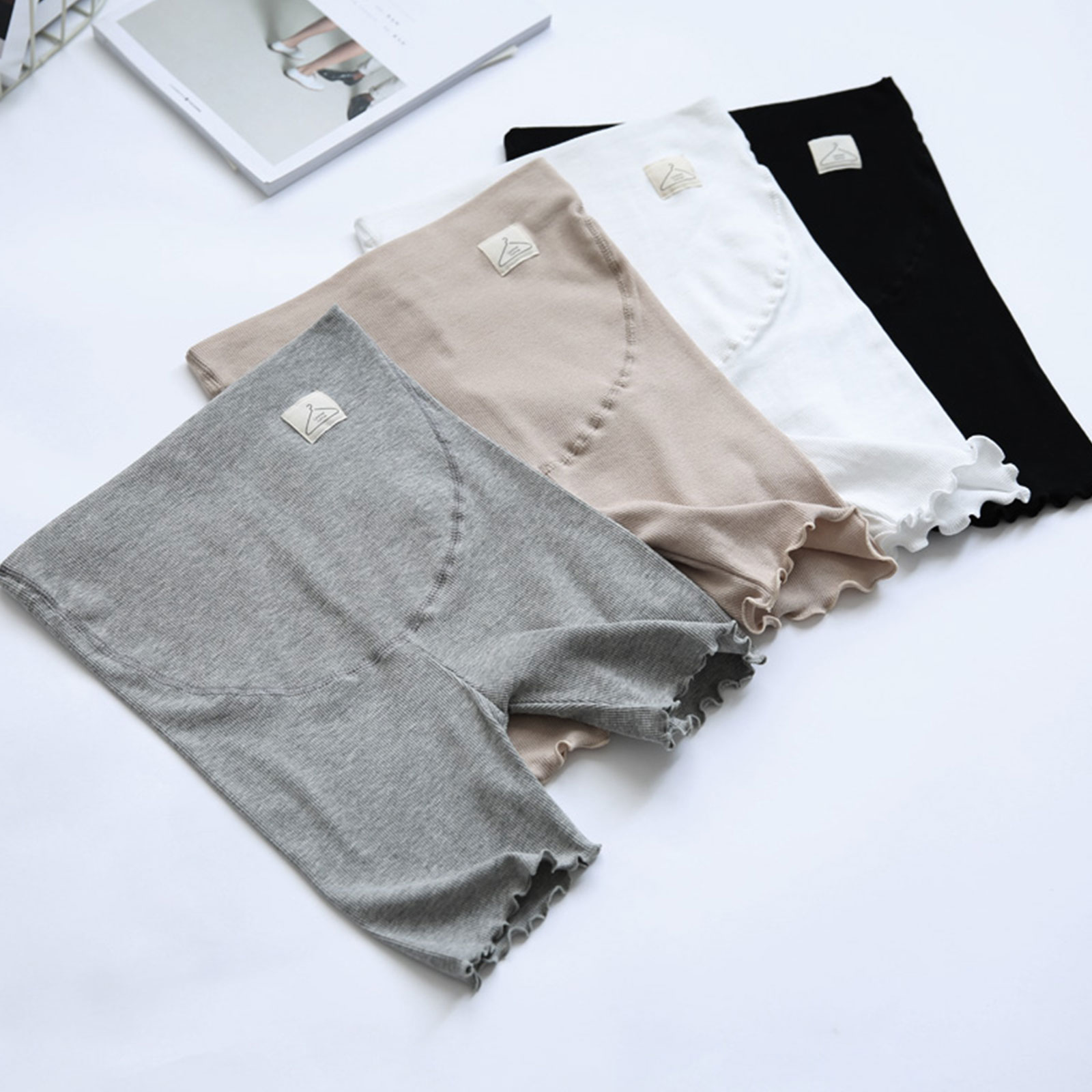 Женские ребристые шорты для беременных с волнистым подолом, нижнее Белье для беременных женщин, шорты для мальчиков, защитные штаны.