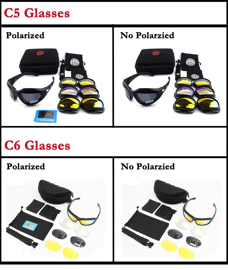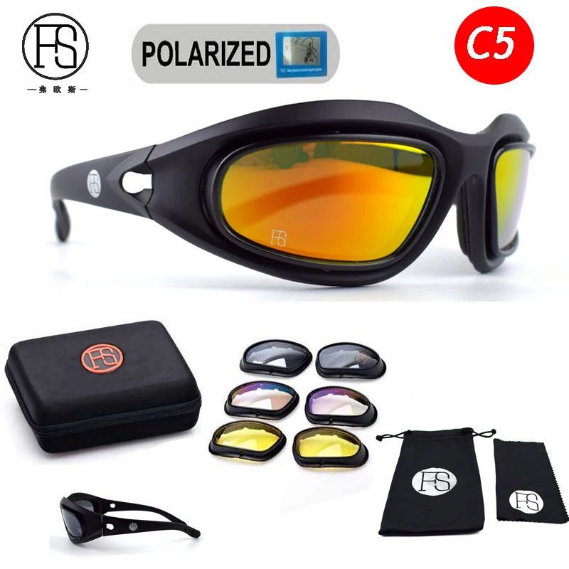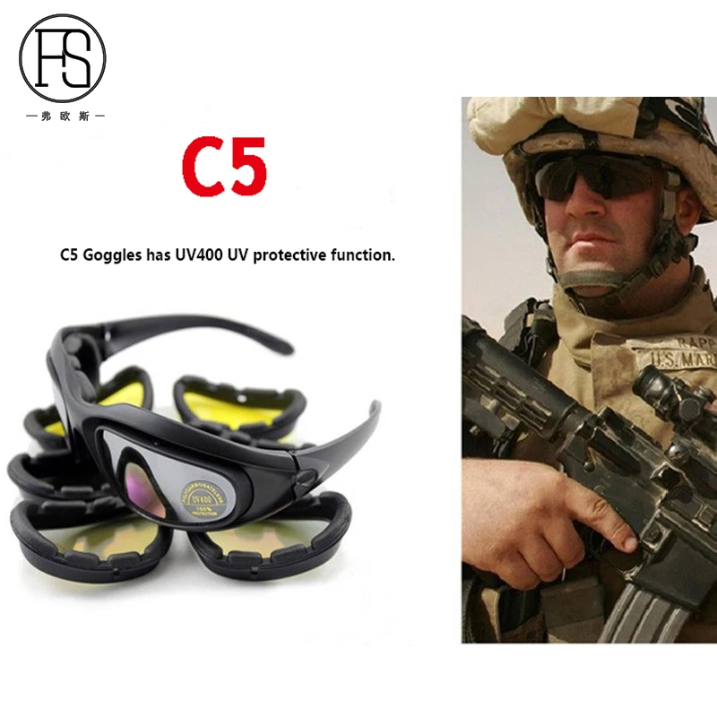 Мужские тактические солнцезащитные очки C5, спортивные поляризационные очки, военные очки для страйкбола, армейские очки для стрельбы, 4 линзы, походные очки