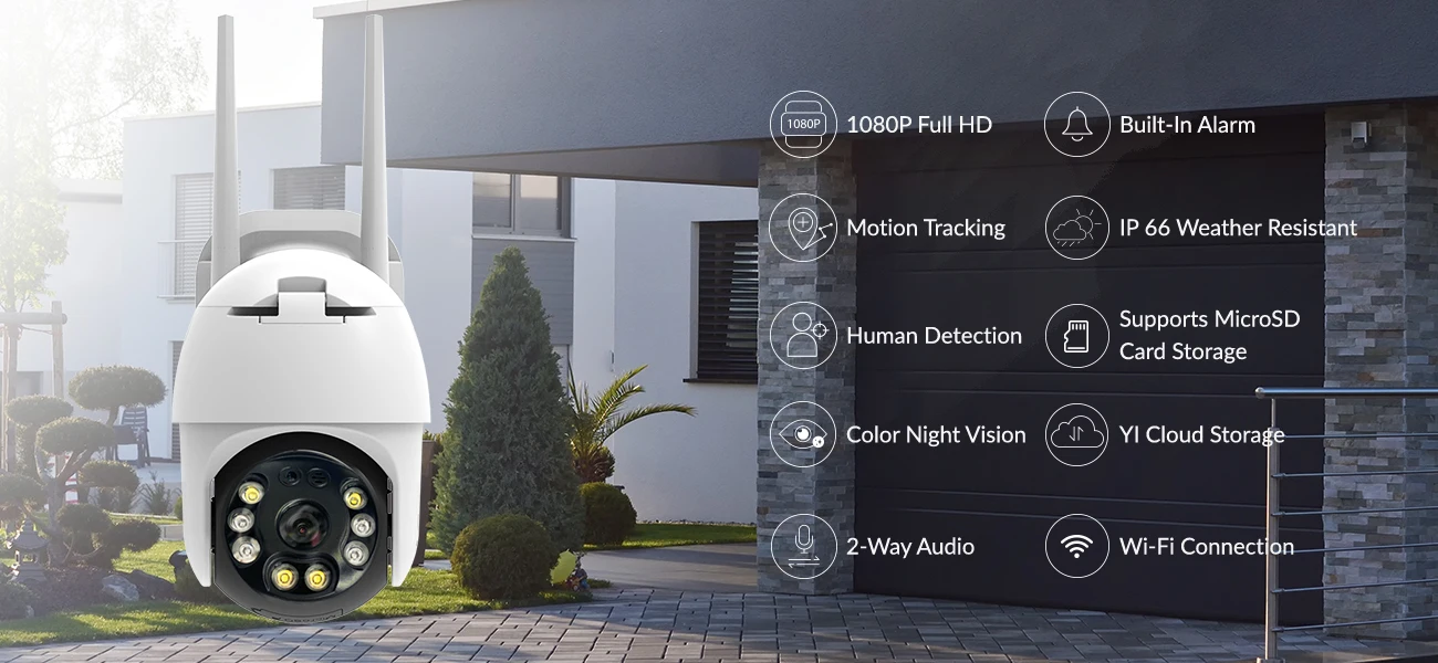 Мониторинг всей территории с помошью одного устройства. Вы не пропустите ни одной детали с камерой YI 1080P Outdoor PTZ.