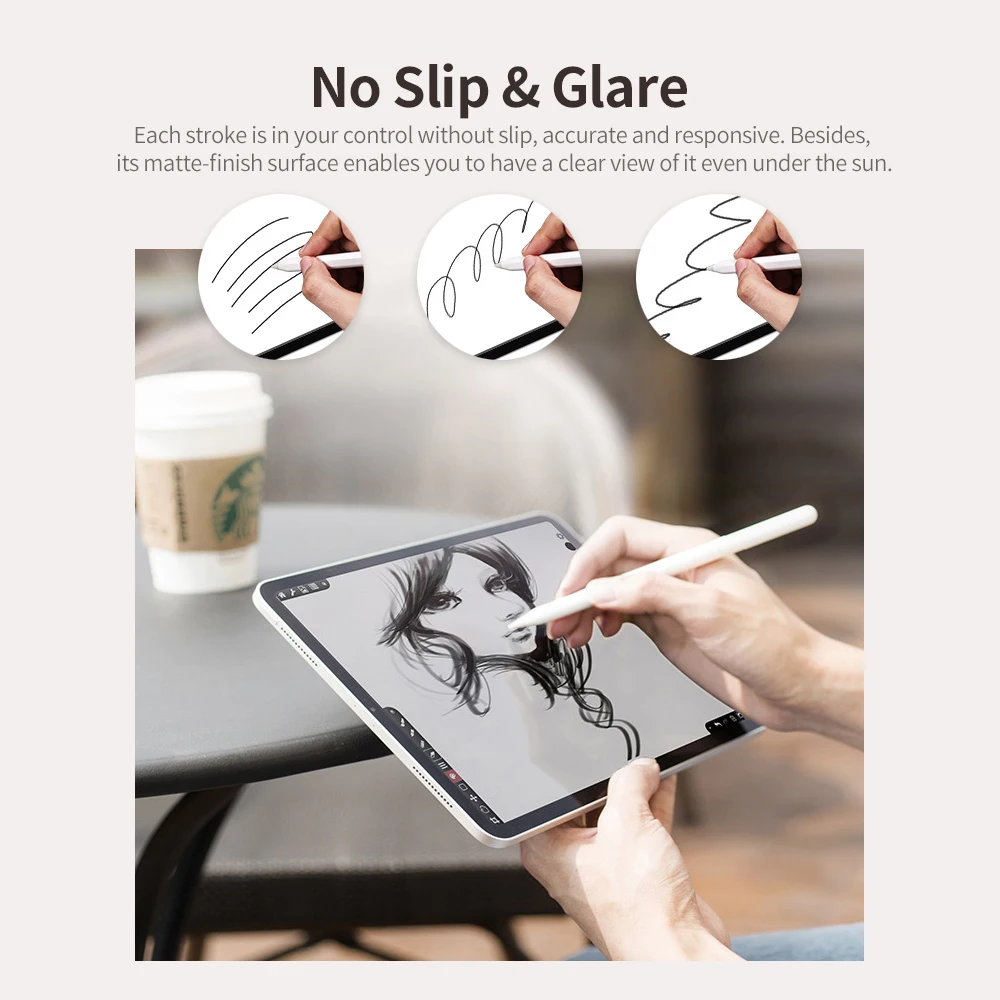 Эта защитная пленка для экрана на бумаге обеспечивает касание на бумаге, остается сенсорной чувствительностью экрана, восстанавливает исходные цвета, противостоит смазке, отпечаткам пальцев и поту, а также подавляет отражение света. Кроме того, каждый ход реагирует без скольжения.