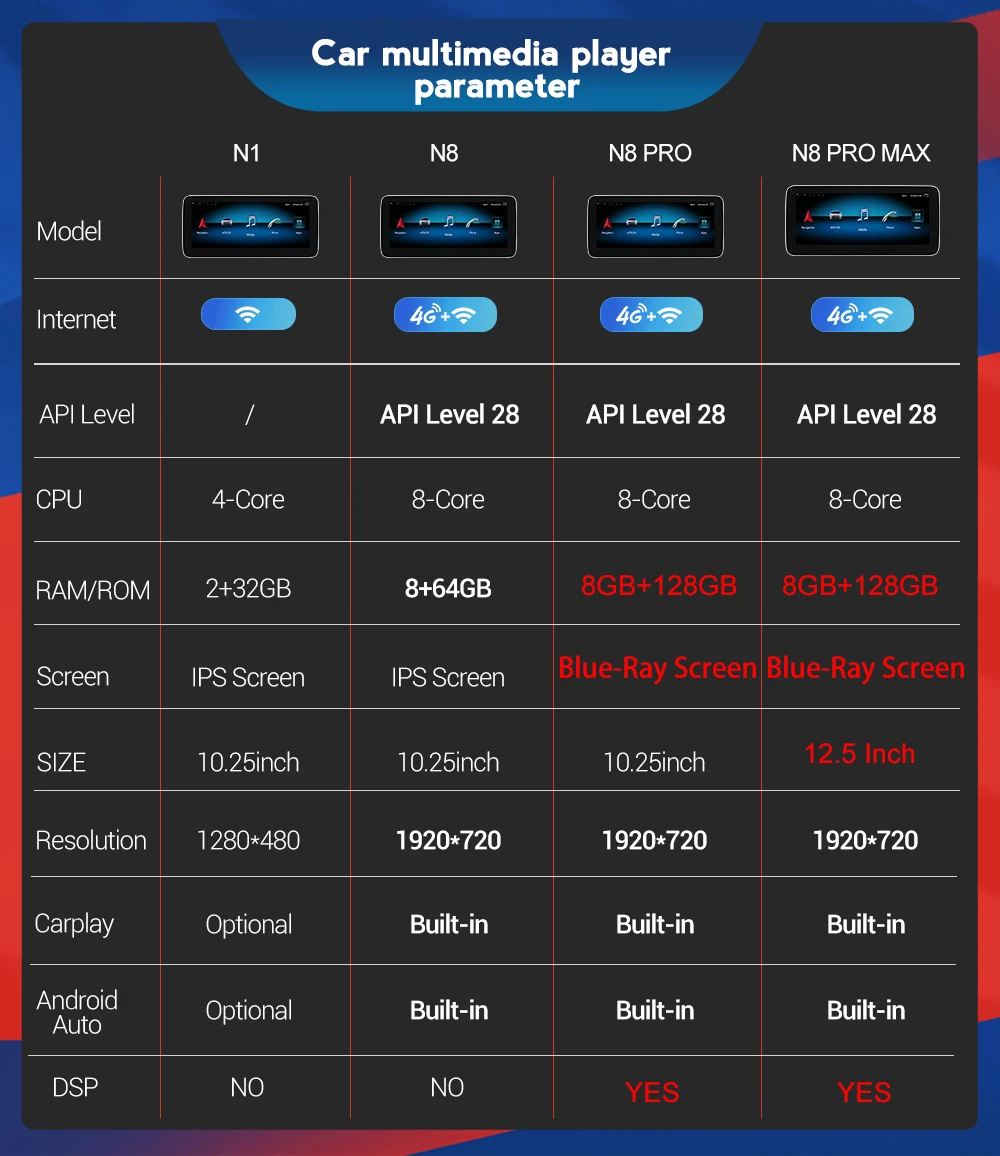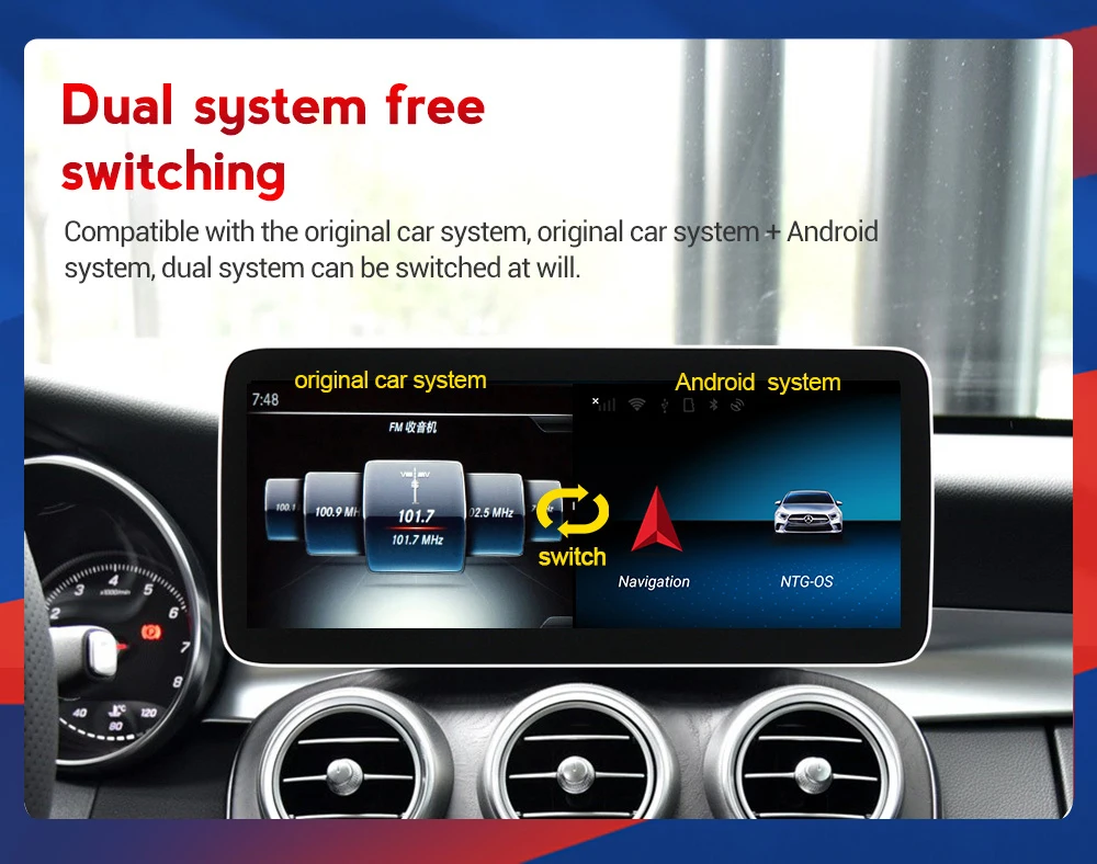 Двойная система преобразования, оригинальная система Mercedes Benz NTG и система Android.Поддерживает все оригинальные функции NTG, такие как заводское радио, gps-навигация, bluetooth, DVD/CD,USB,SD и т. д., поддержка заводской камеры заднего вида обратного траектории., 360 камера, дверная открытая warnig, совместима с оригианским джойстиком, сенсорной мышью и управлением рулевым колесом, совместима с оригинальной звуковой системой и оптическим волокном, воспроизведение звука без потерь.Новые модели и новый пользовательский интерфейс, больше напоминающий оригинальный автомобильный стиль, более стильный