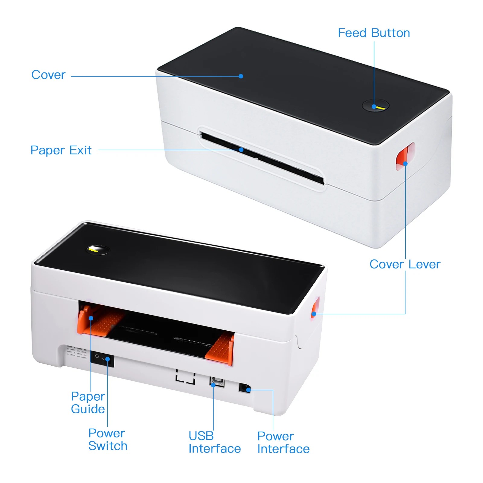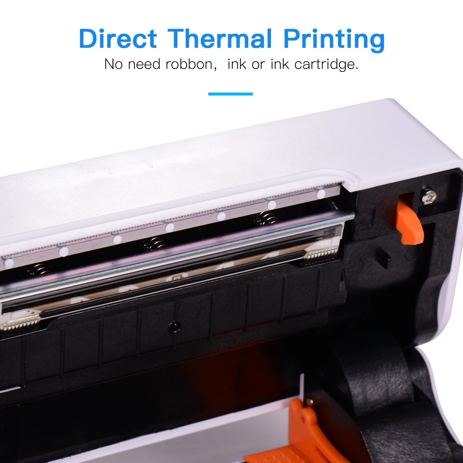 Без бумажного ящика, печатная бумага размещается снаружи принтера. Картридж с чернилами или лента не требуются, низкие эксплуатационные расходы, термоэтикетка легко купить.